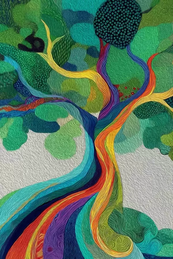 Poster Copac cu ramuri curcubeu pe fundal verde Nr f46173
