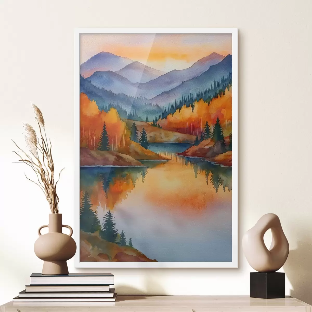 Poster Peisaj de toamnă cu munți reflectați într-un lac liniștit Nr f46174