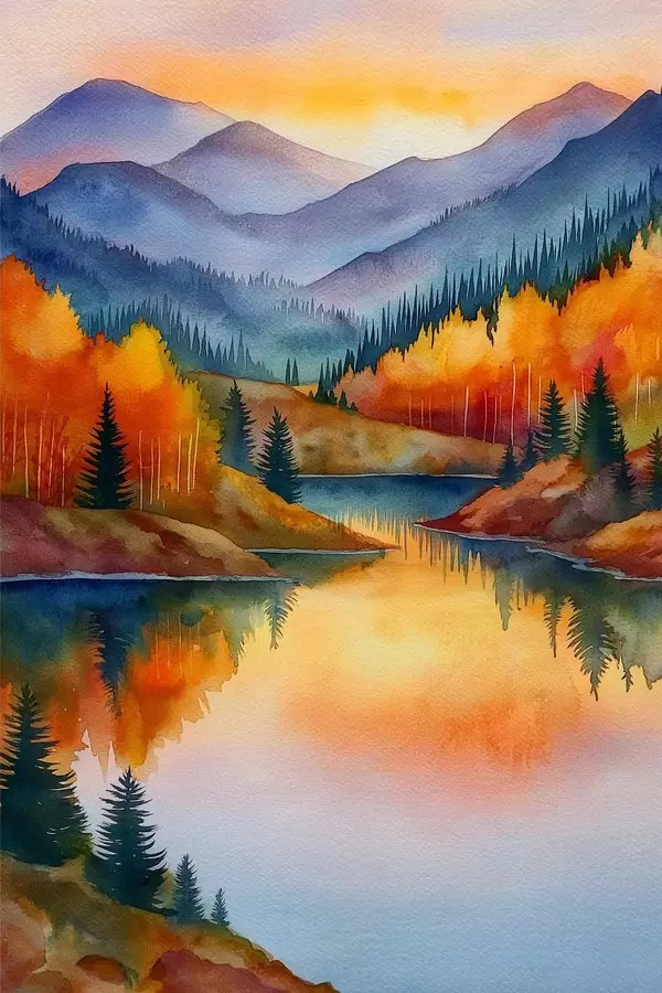 Poster Peisaj de toamnă cu munți reflectați într-un lac liniștit Nr f46174