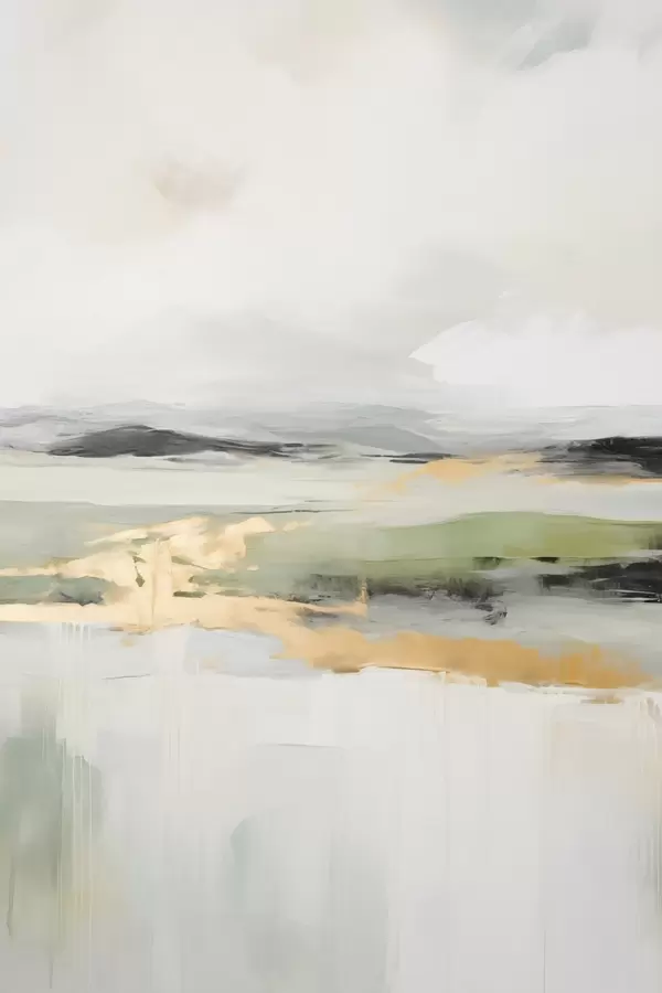 Poster Peisaj abstract cu accente galbene, o compoziție minimalistă de pământ, apă și cer, cu culori discrete Nr f46269