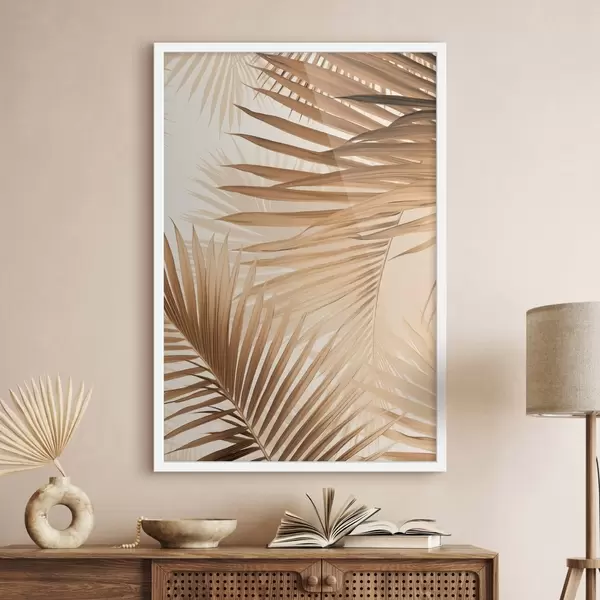 Poster Frunze de palmier abstracte în tonuri de maro, tropical, botanic, natură, minimalist, elegant, design modern f46275