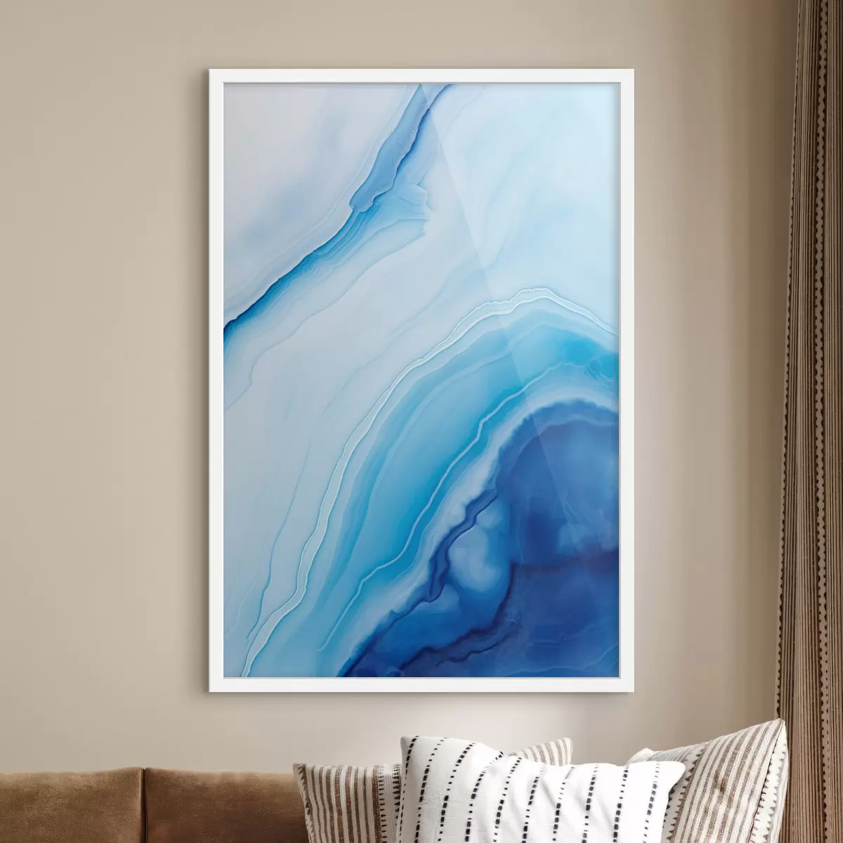 Poster Imprimare abstractă albastră și albă cu agate, linii și gradienturi învolburate, textură netedă, artă modernă, minimalistă Nr f46290