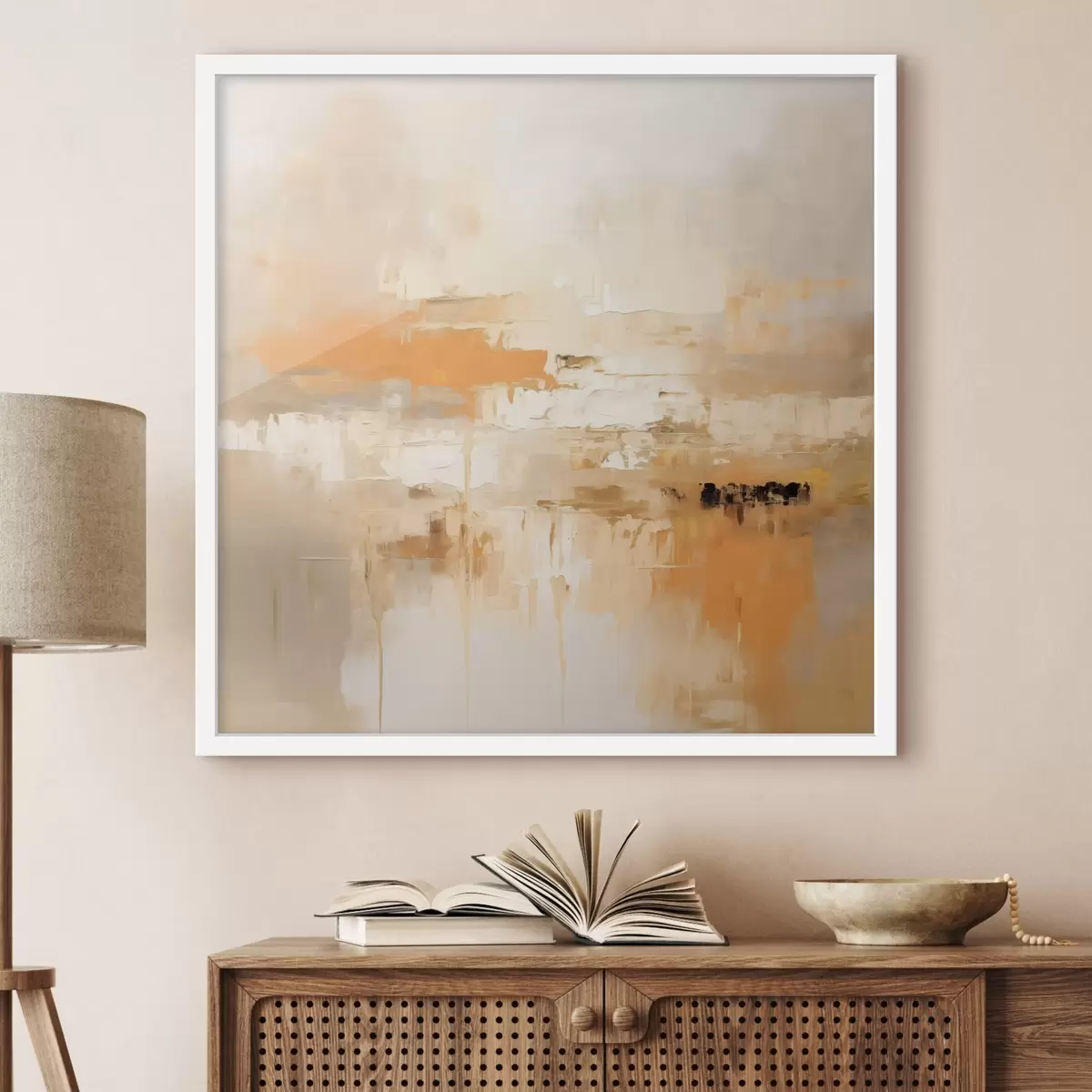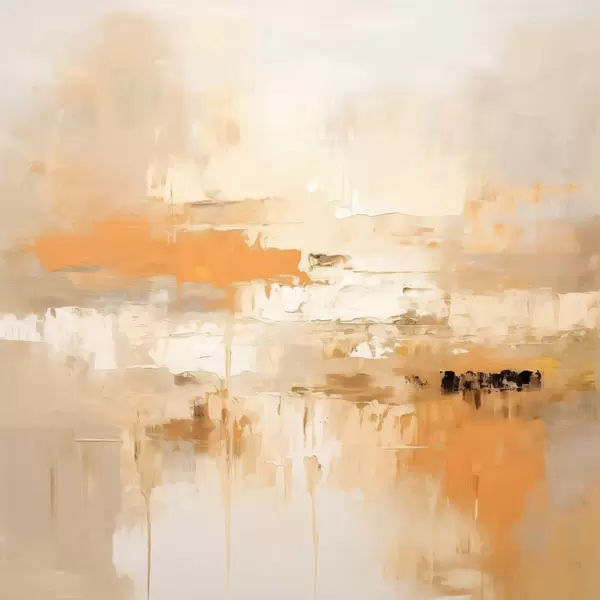 Poster Abstracție peisagistică în stilul picturii în ulei, cu tonuri de portocaliu și bej Nr f46314