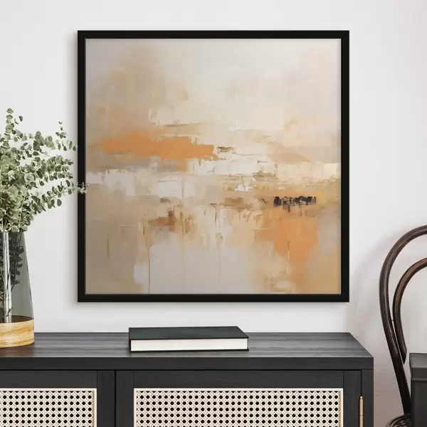 Poster Abstracție peisagistică în stilul picturii în ulei, cu tonuri de portocaliu și bej f46314