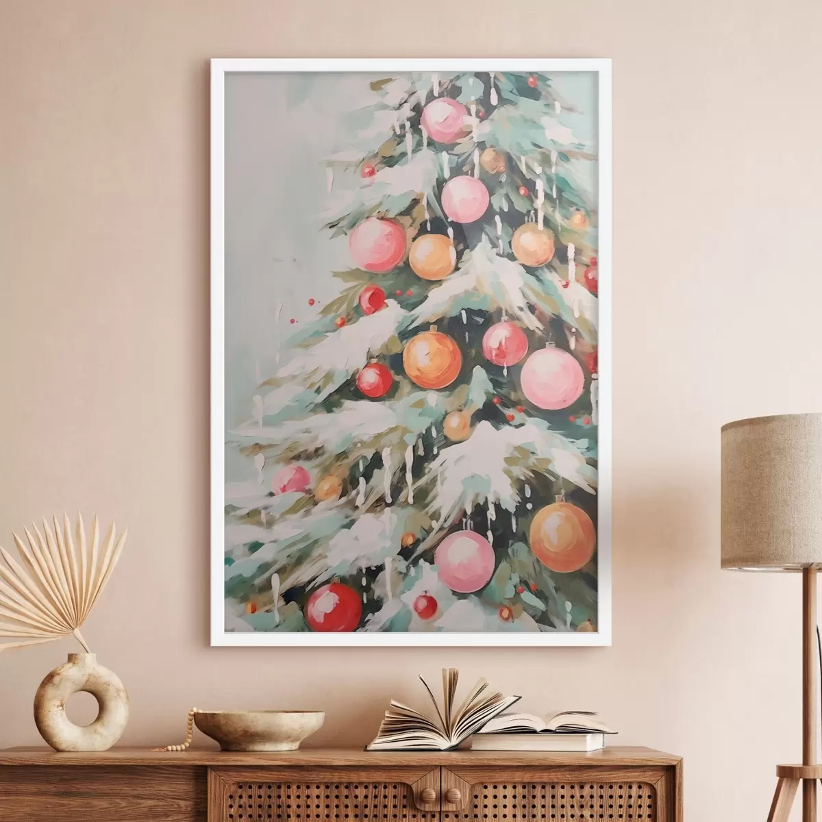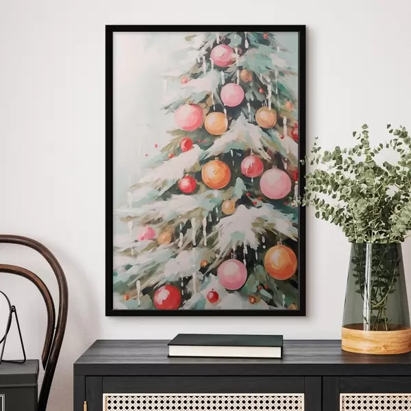 Poster Brad de Crăciun cu zăpadă și bile roz Nr f46480