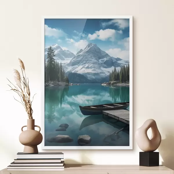 Poster Lac alpin cu canoe și vârfuri înzăpezite Nr f46481