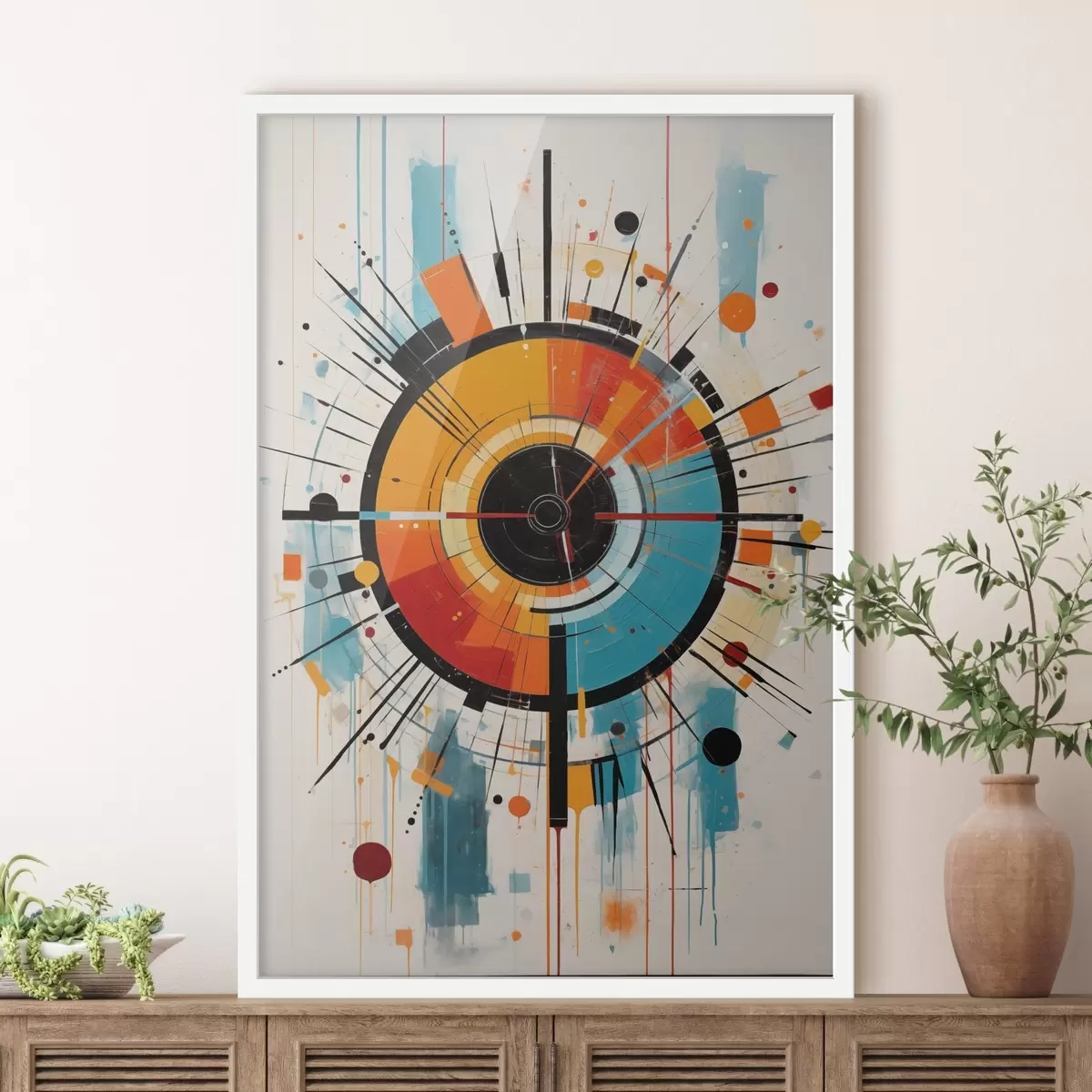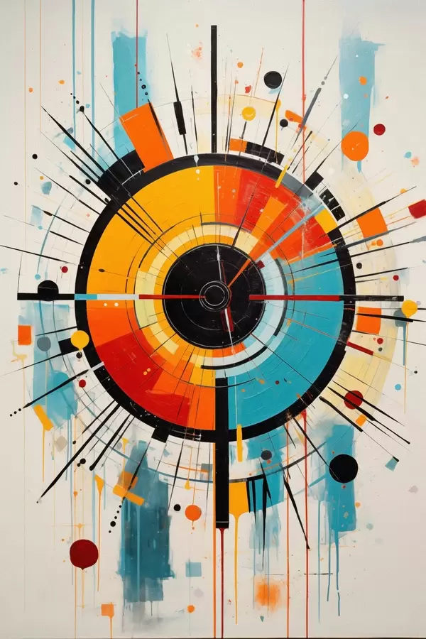 Poster Explozia radială în verde-albastru, portocaliu și negru f46485