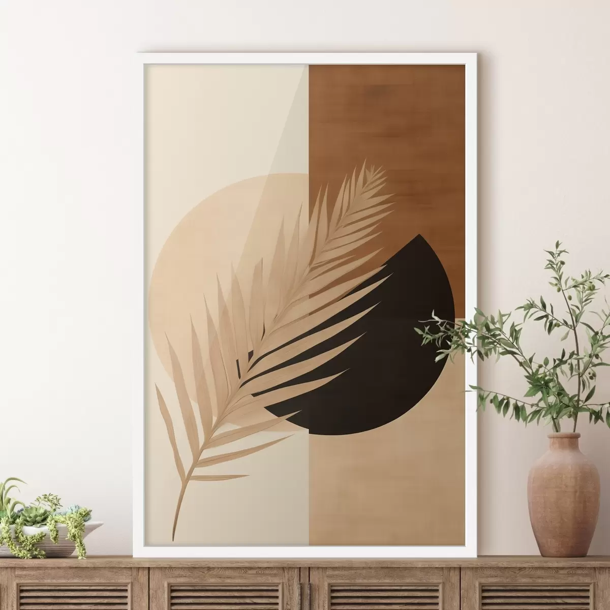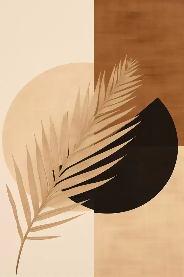 Poster Frunză de palmier peste geometrie teracotă și crem Nr f46490
