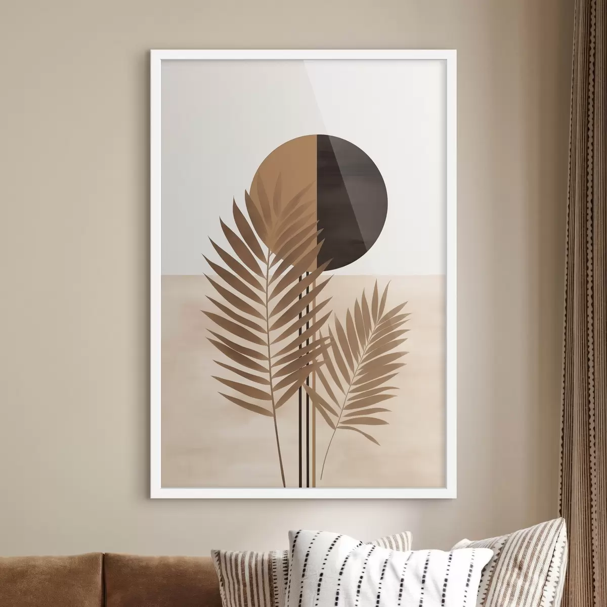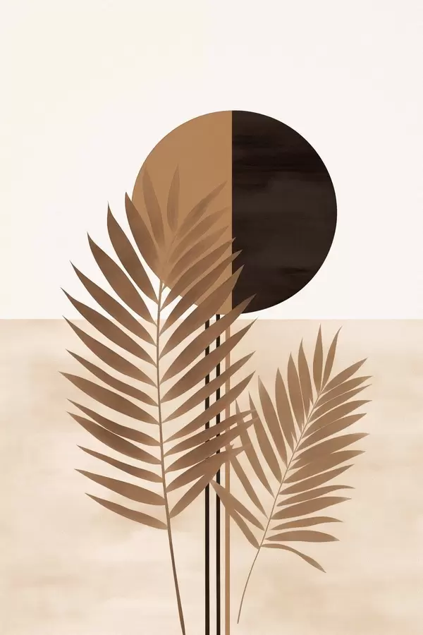 Poster Două frunze de palmier cu motivul soarelui în formă de cerc divizat Nr f46491
