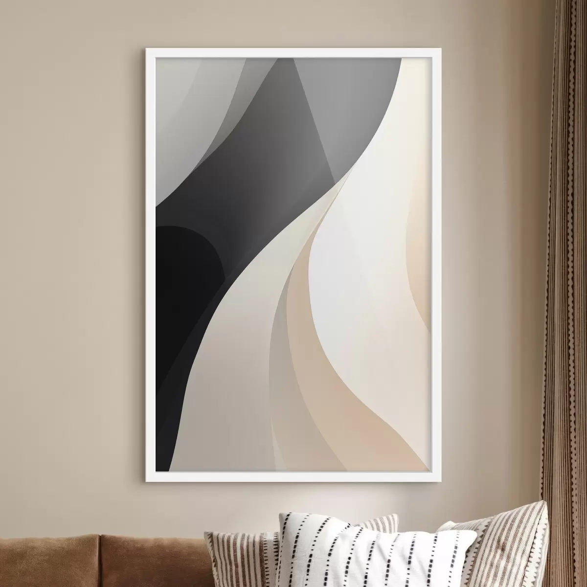 Poster Curbe elegante suprapuse în culori cărbune, fildeș și nisip Nr f46493