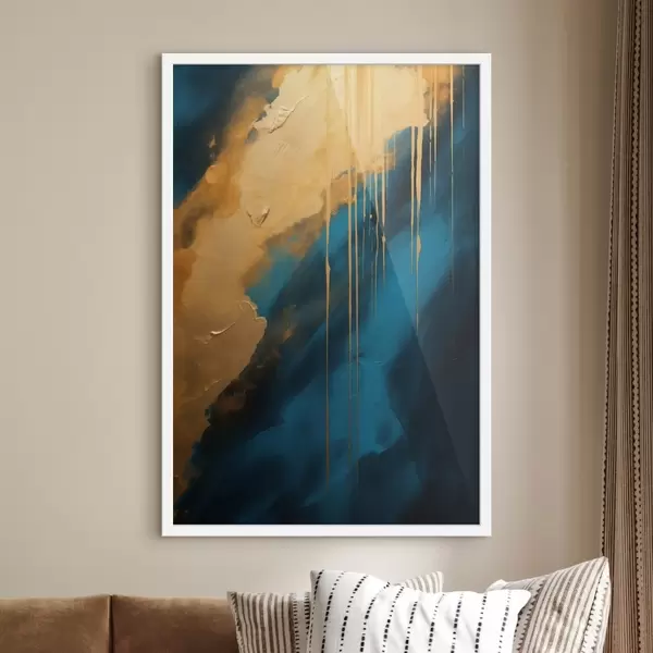 Poster Teal și albastru intens abstract cu accente calde și fluide Nr f46509