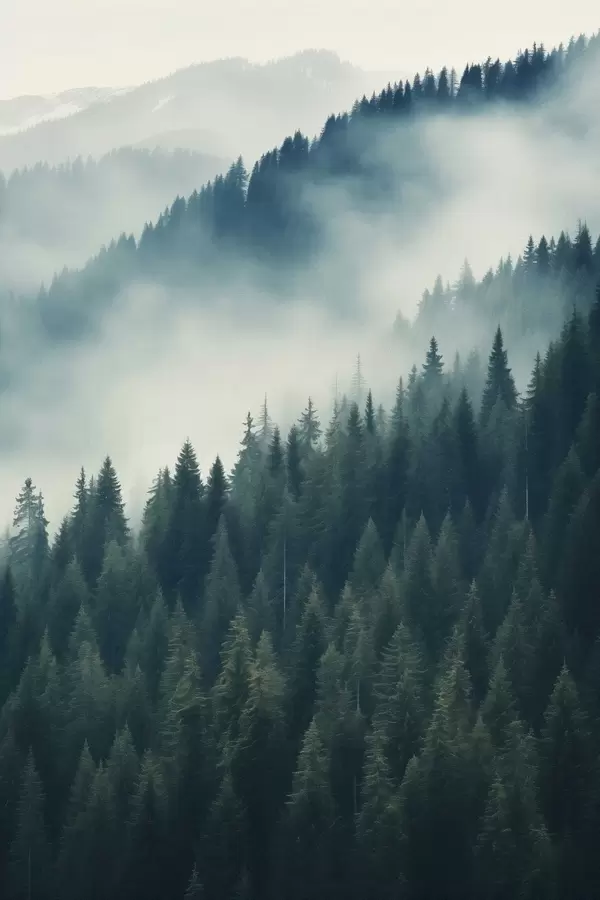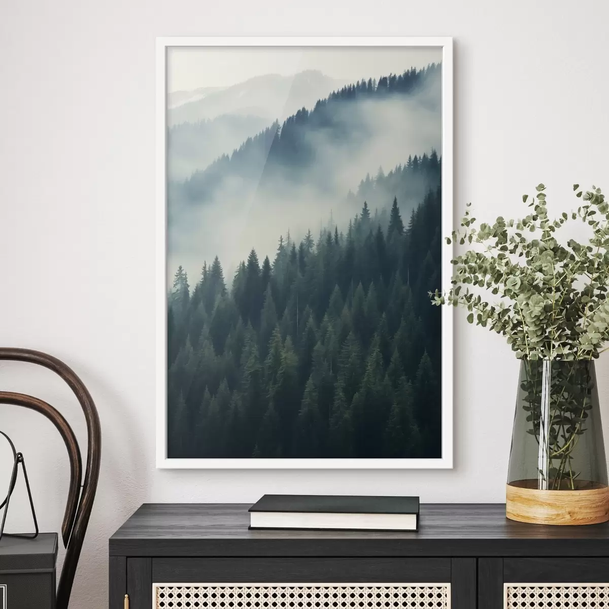 Poster Ceață peste versanții acoperiți de conifere, nuanțe de verde intens Nr f46516