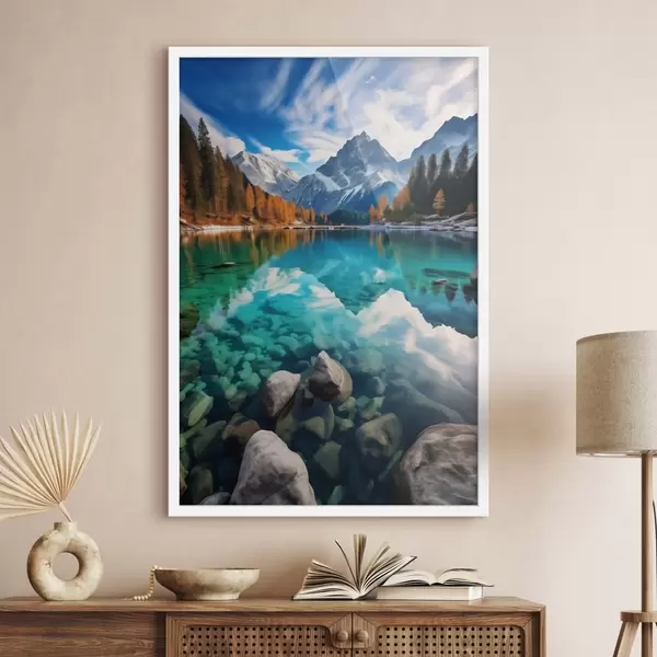 Poster Lac de munte cu apă turcoaz și larici de toamnă Nr f46517