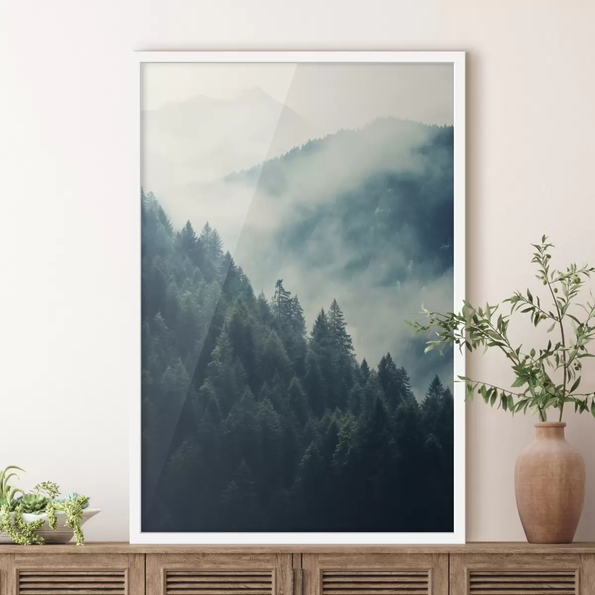 Poster Creaste de munte cețoase și pădure întunecată de conifere f46518