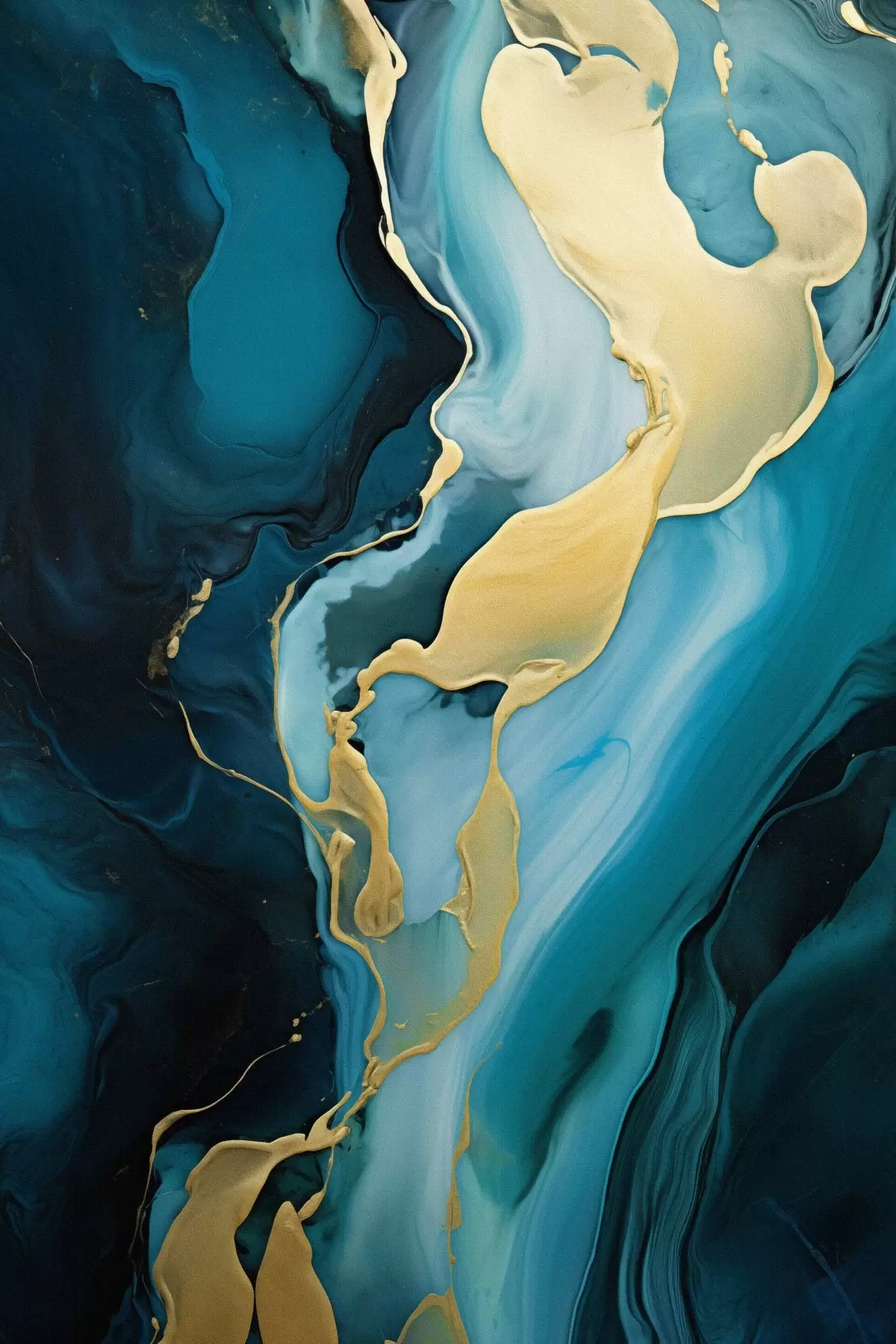 Poster Albastru-verde abstract cu un flux de ocru Nr f46530