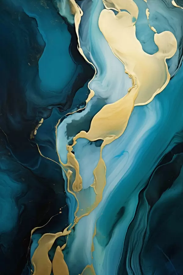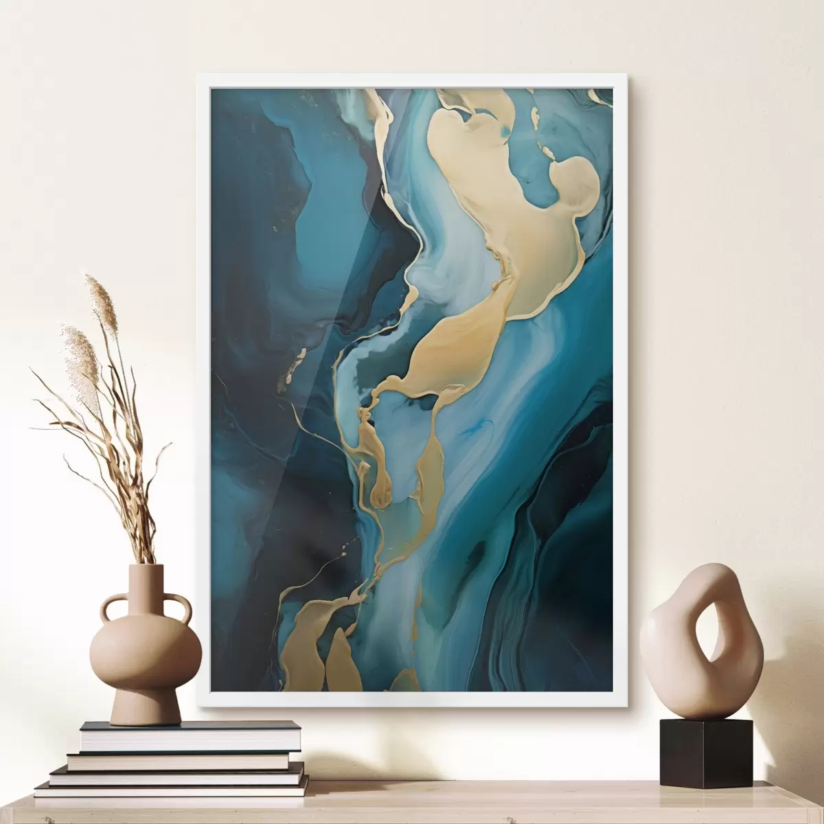 Poster Albastru-verde abstract cu un flux de ocru f46530