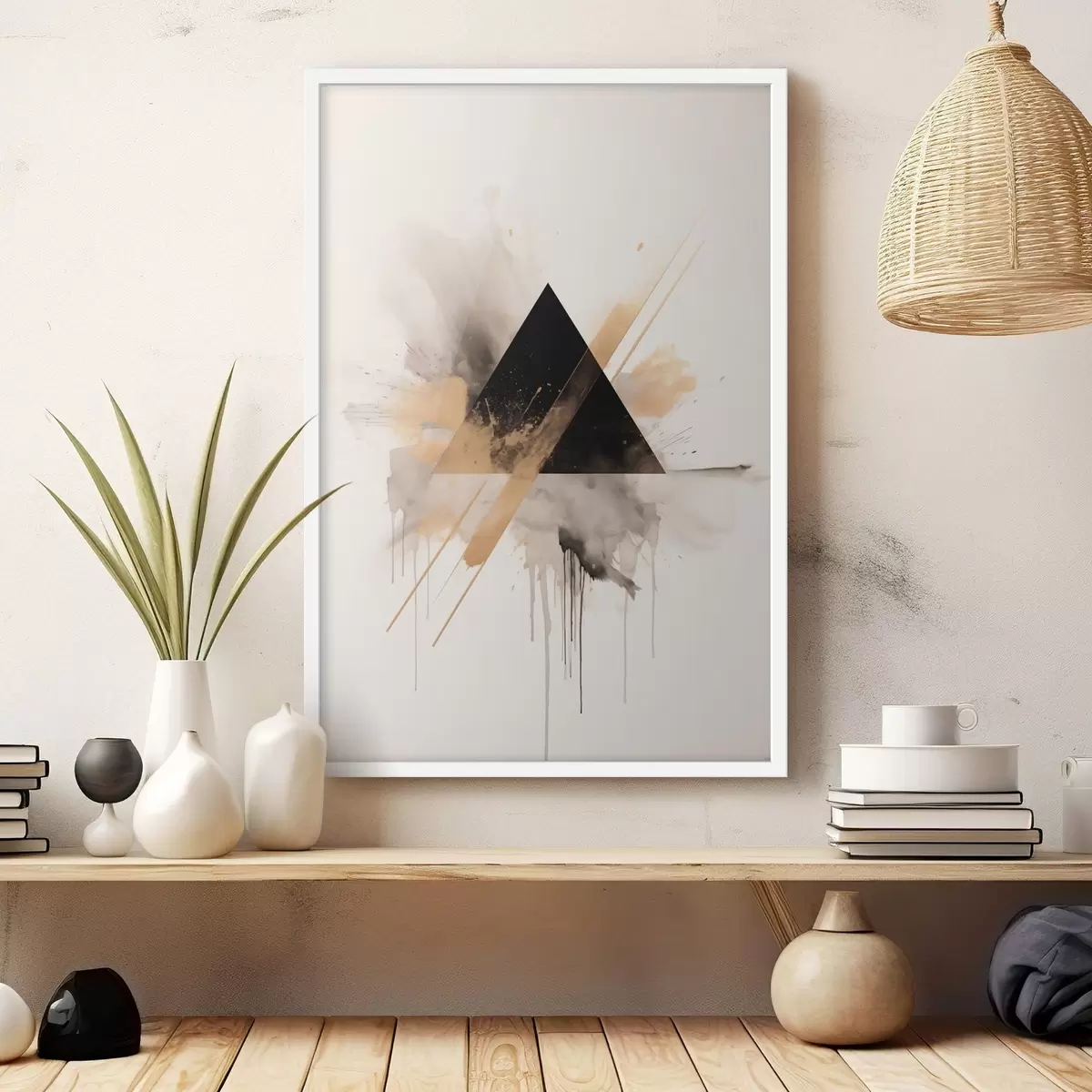 Poster Geometrie: triunghi negru cu pete și linii luminoase Nr f46540