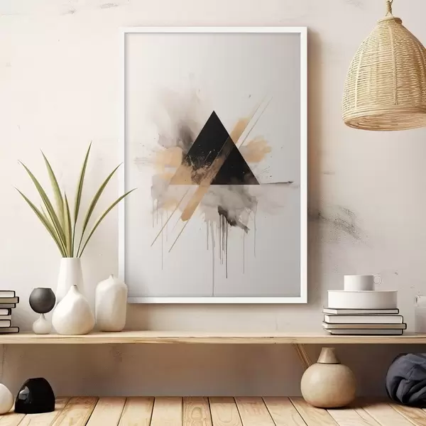 Poster Geometrie: triunghi negru cu pete și linii luminoase f46540