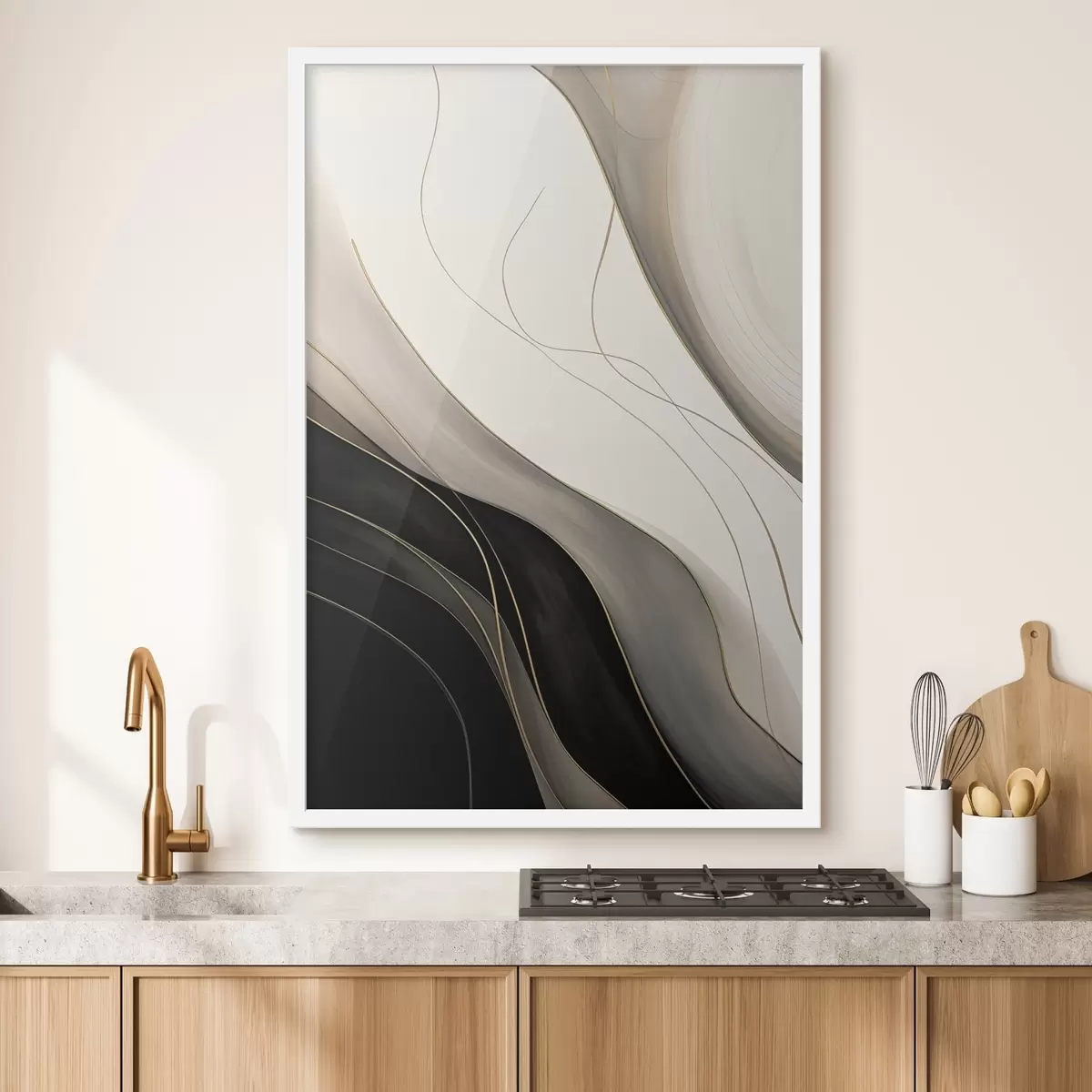 Poster Valuri în negru și bej cu linii fine de ocru f46541