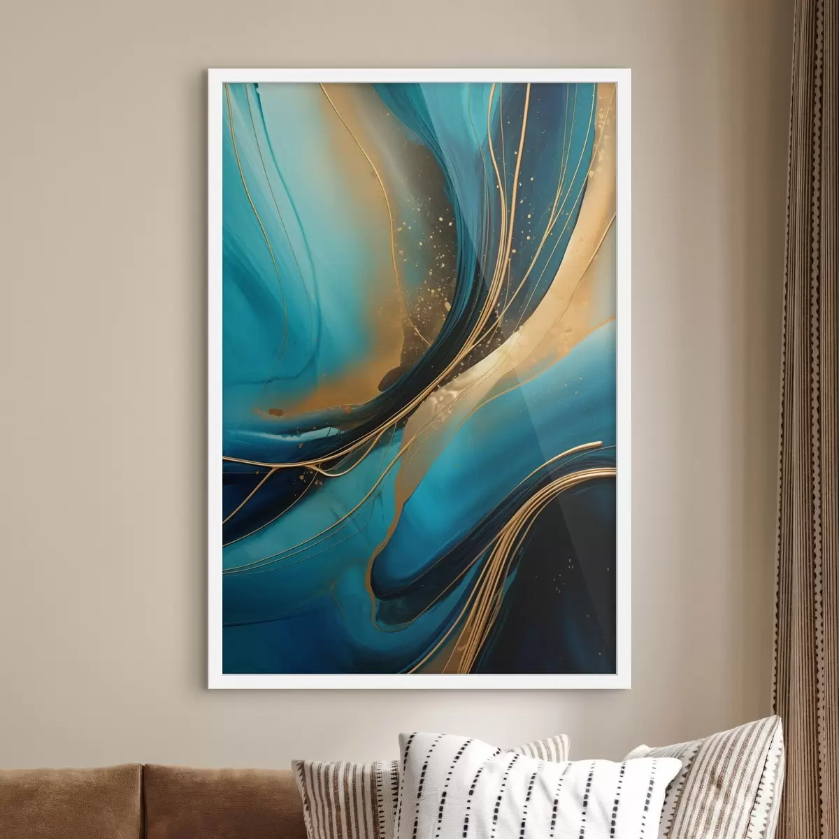 Poster Curgere turcoaz cu fire subțiri de ocru Nr f46543