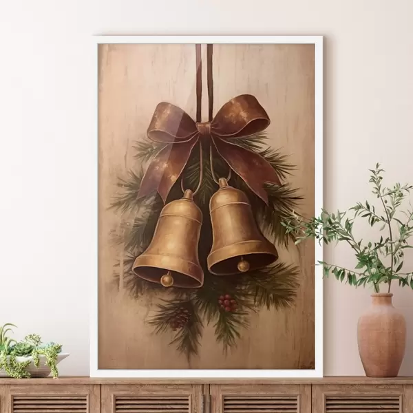 Poster Decorațiune vintage de Crăciun cu două clopoței și o fundă f46626