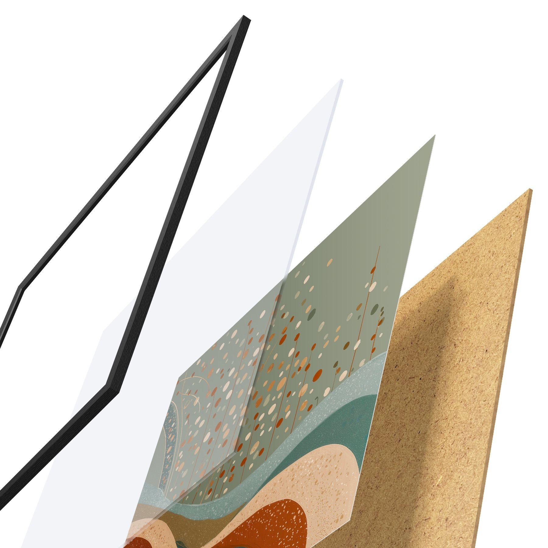 Afișul constă dintr-o ramă, plexiglas, imagine imprimată și suport din PAL. Posterul poate fi agățat imediat pe perete datorită suporturilor de pe spate.