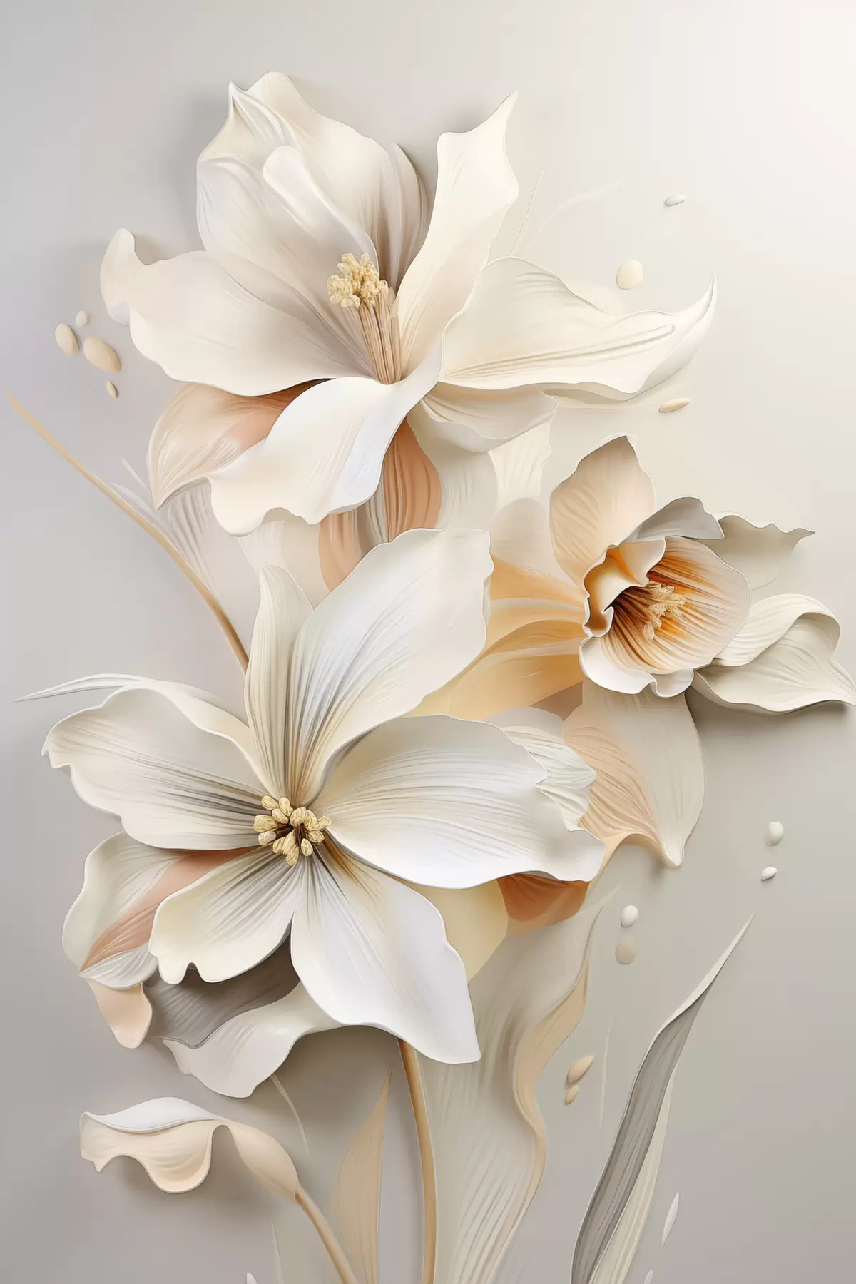 Poster Flori albe, petale cu umbre delicate, fundal bej deschis, compoziție elegantă, stil minimalist Nr f46699