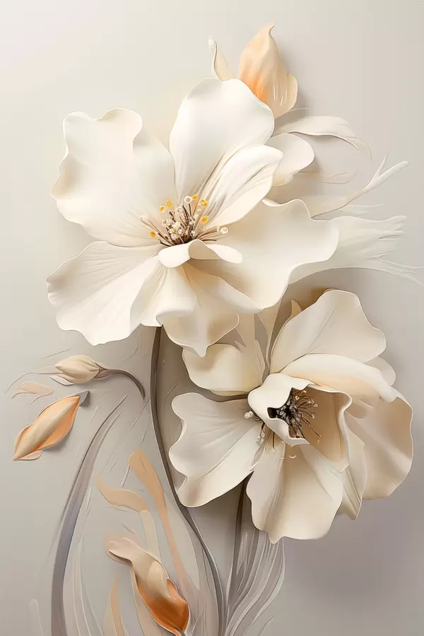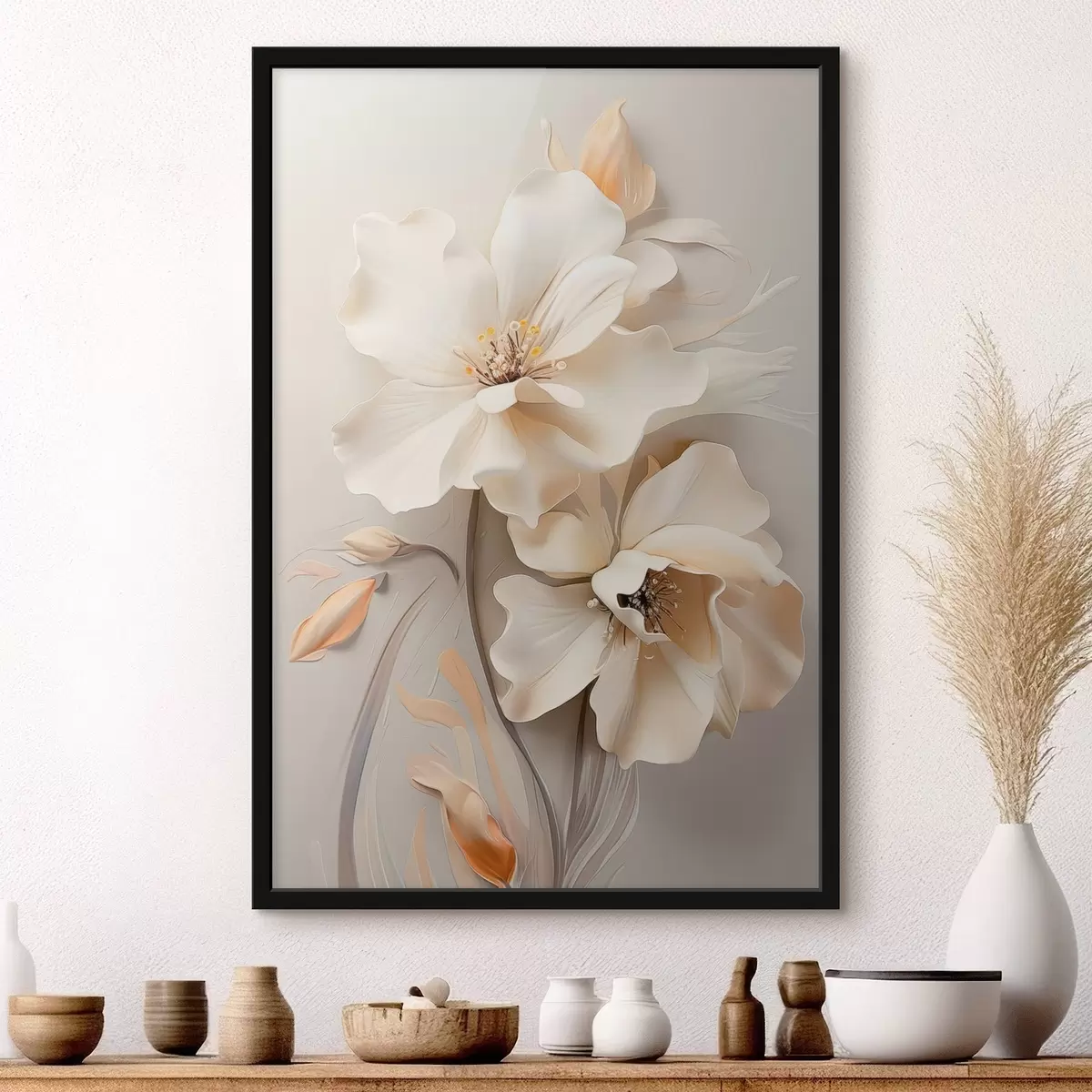 Poster Flori albe, petale cu umbre delicate, fundal bej deschis, compoziție elegantă, stil minimalist Nr f46700