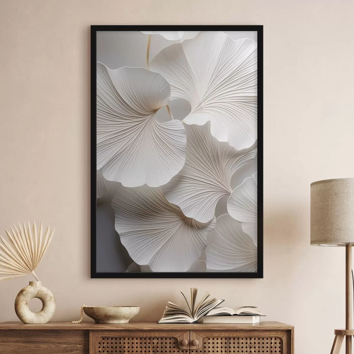 Poster Frunze albe de ginkgo biloba cu nervuri detaliate, iluminare difuză, textură elegantă și design minimalist f46705