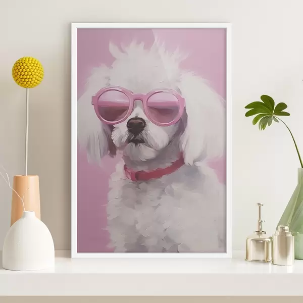 Poster Un câine mic care poartă ochelari este o imitație a picturii. Nr f46722