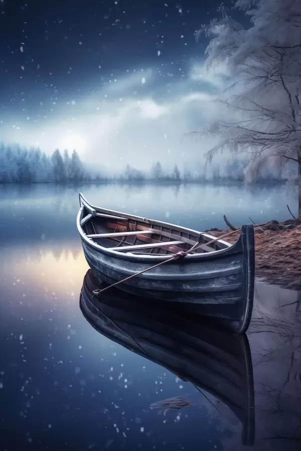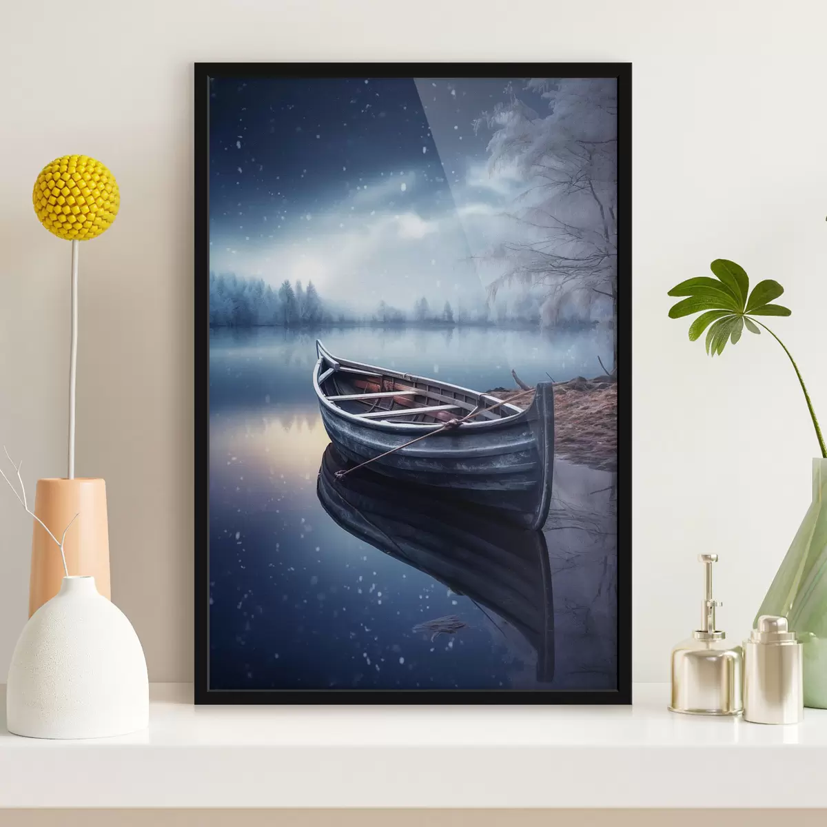 Poster Barcă goală lângă un lac iarna Nr f46773