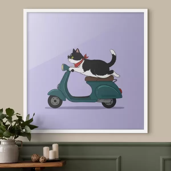 Poster Pisică pe o motoretă f46847