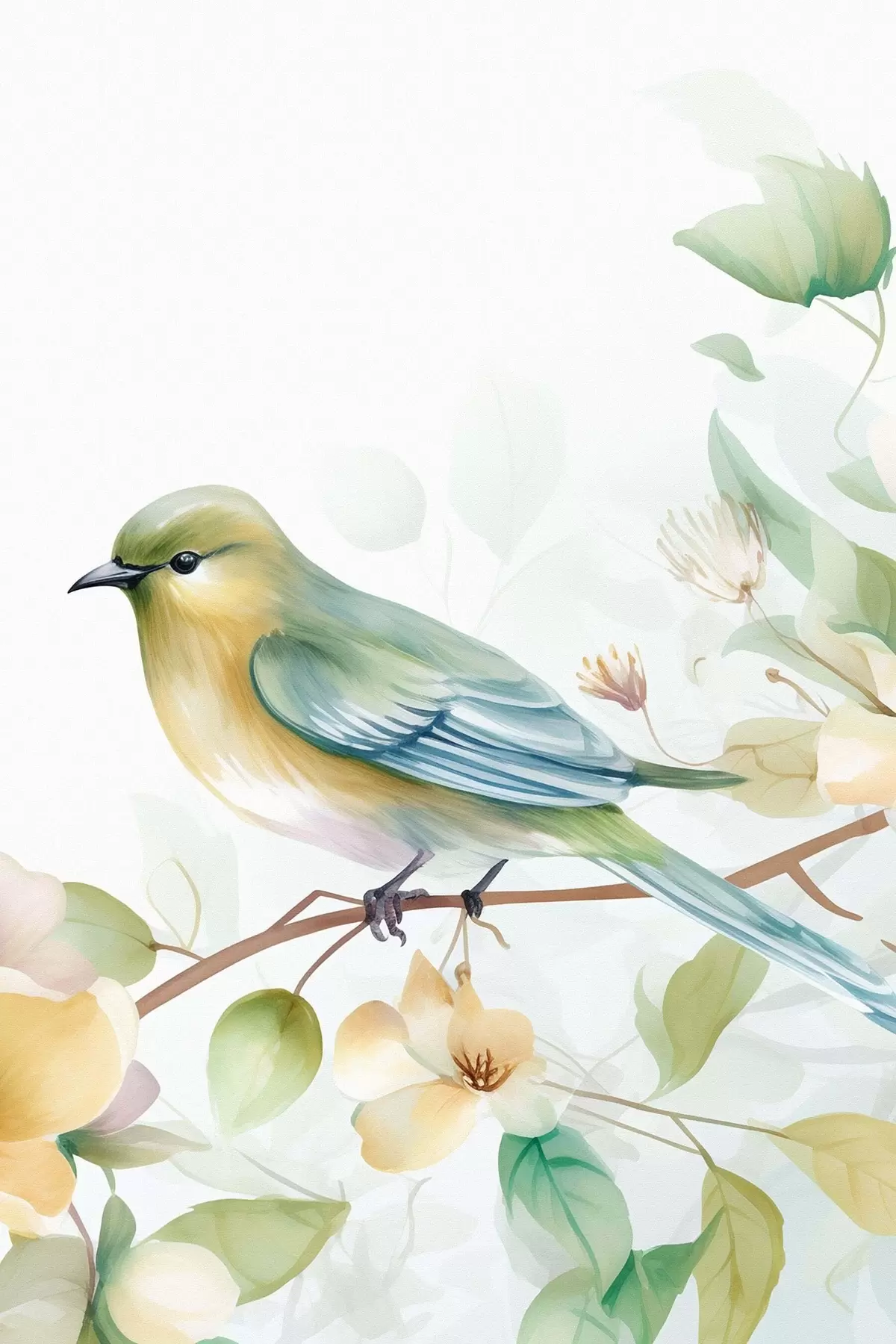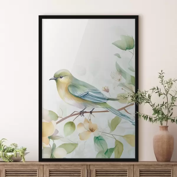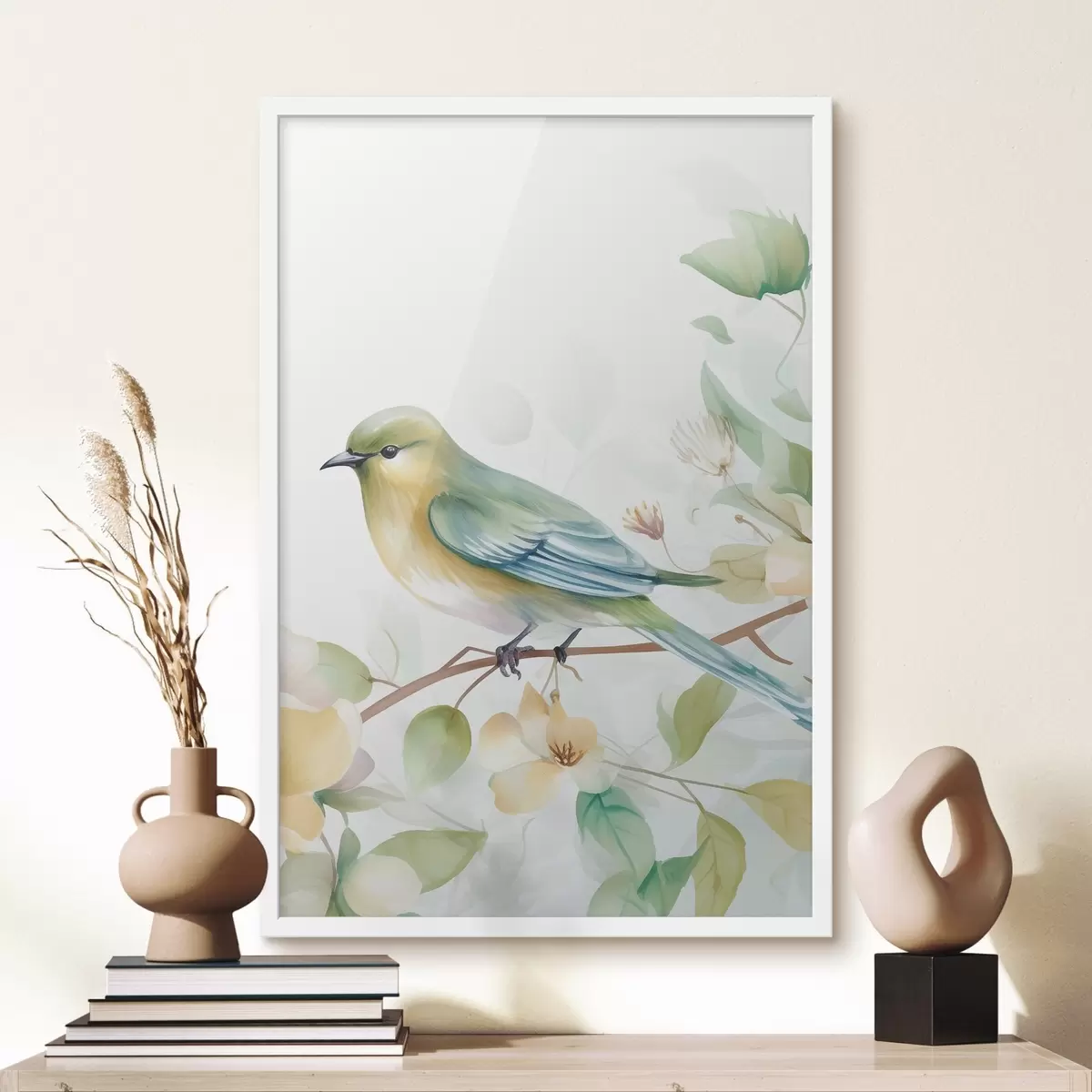 Poster Păsărică pe o ramură, imitație de acuarelă Nr f46892