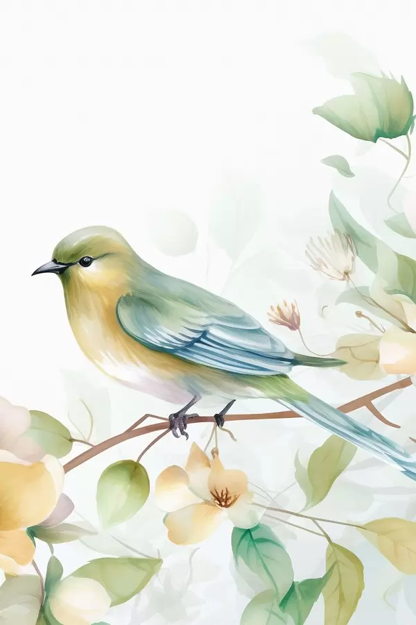 Poster Păsărică pe o ramură, imitație de acuarelă f46892