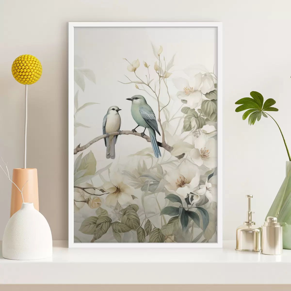 Poster Două păsări pe ramuri de iasomie Nr f46896