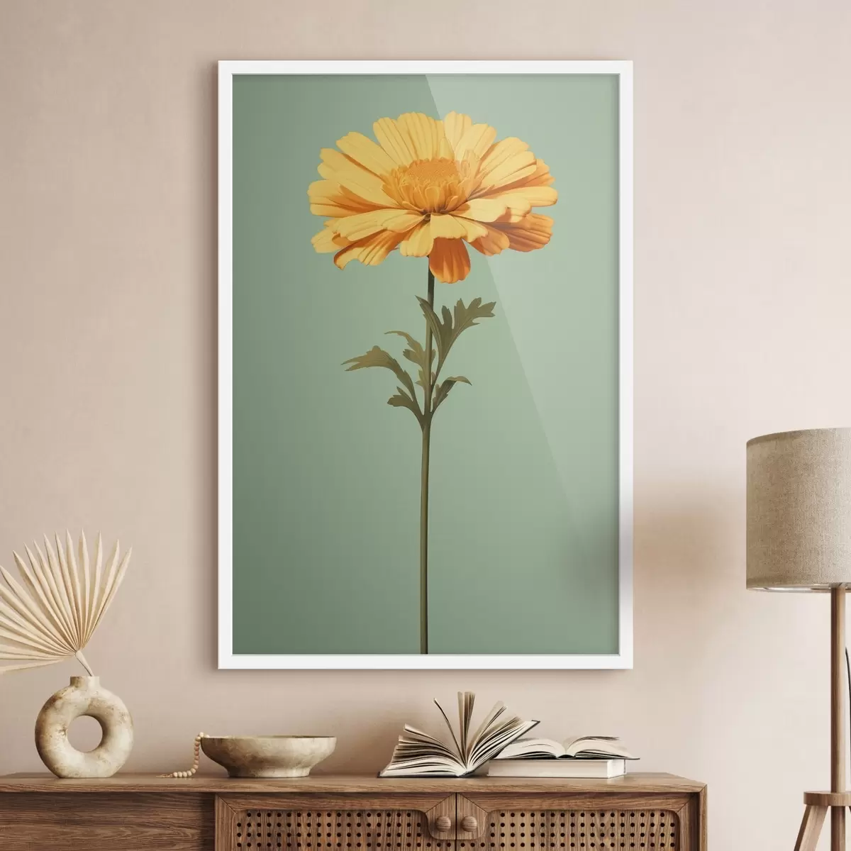 Poster Calendula galbenă pe fundal mentă în stil minimalist Nr f46926