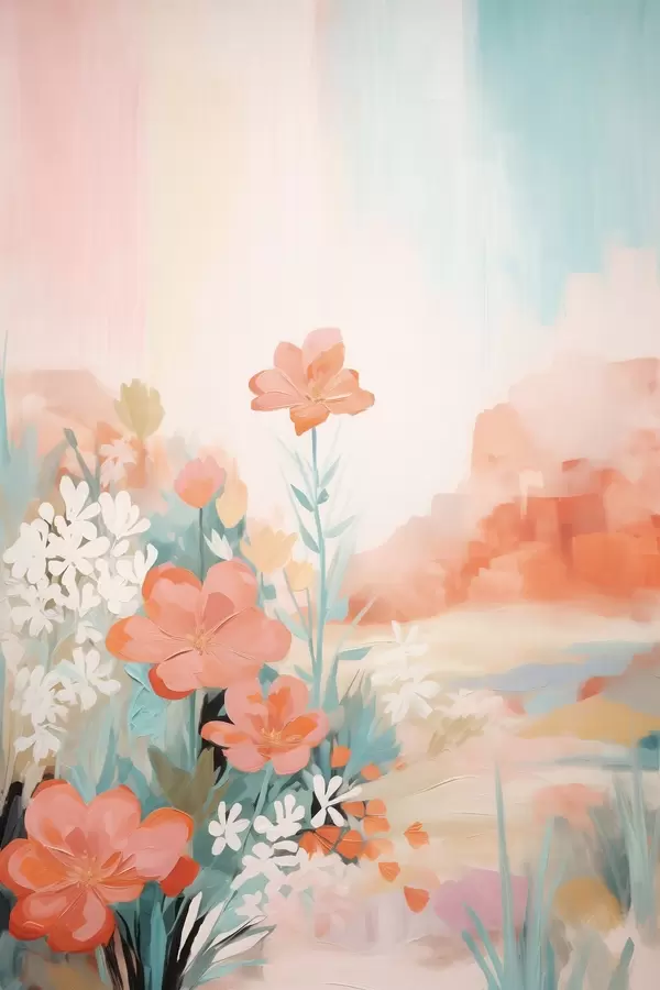 Poster Peisaj floral abstract într-o paletă de culori roz și albastru Nr f46932