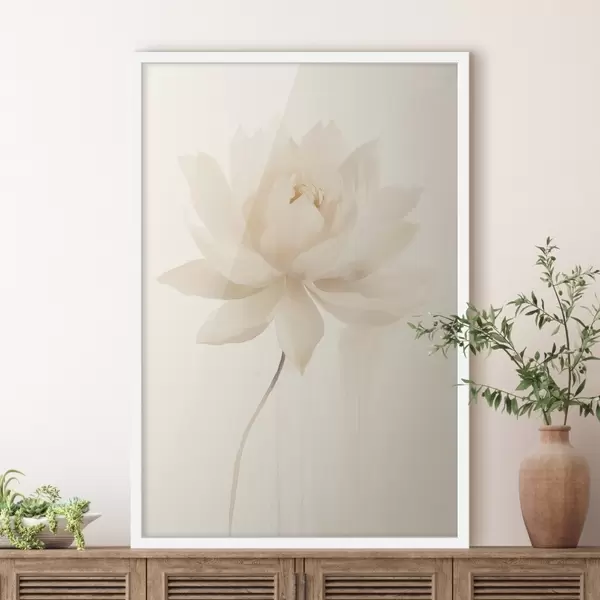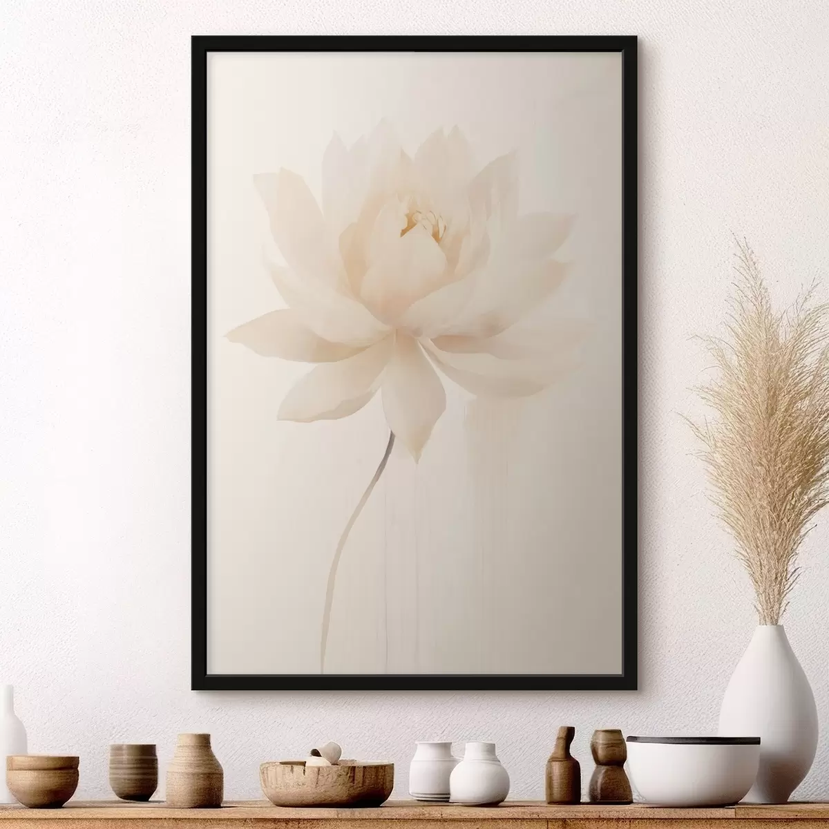 Poster Lotus alb delicat pe un fundal deschis, în stil minimalist Nr f46936