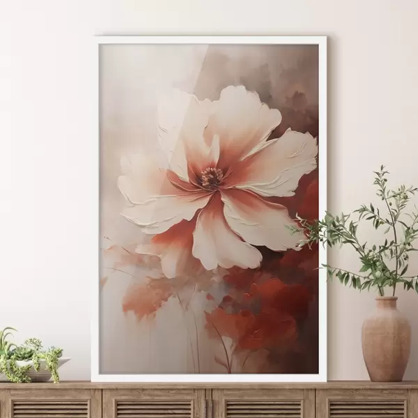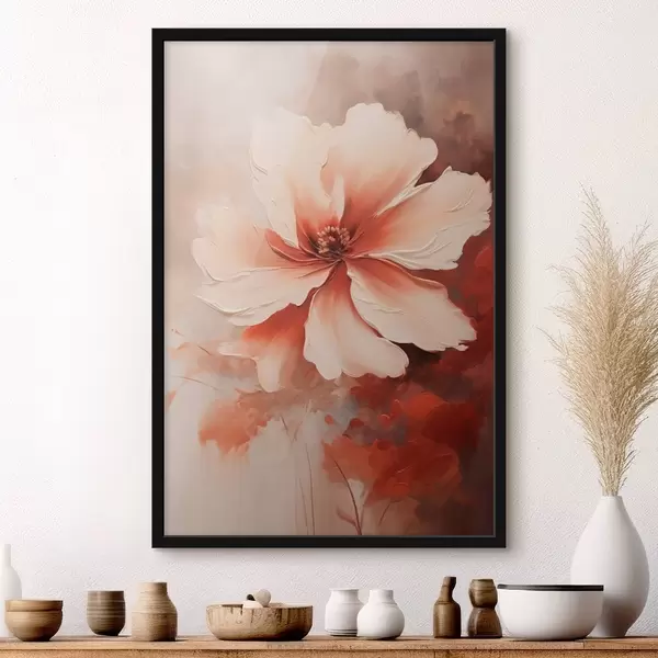 Poster Prim-plan al unei flori de coral alb pe un fundal estompat, în stilul picturii în ulei Nr f46939