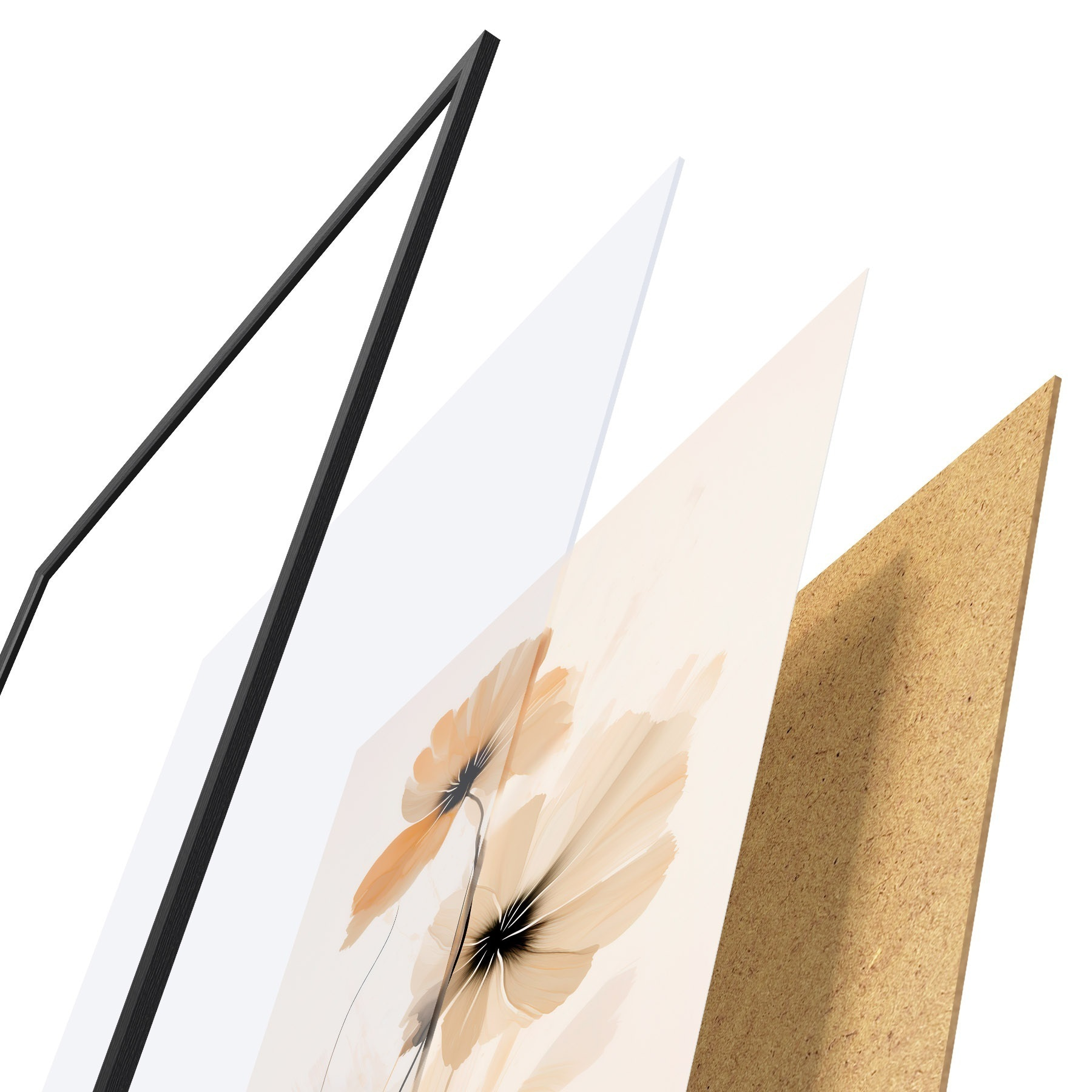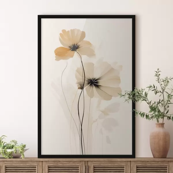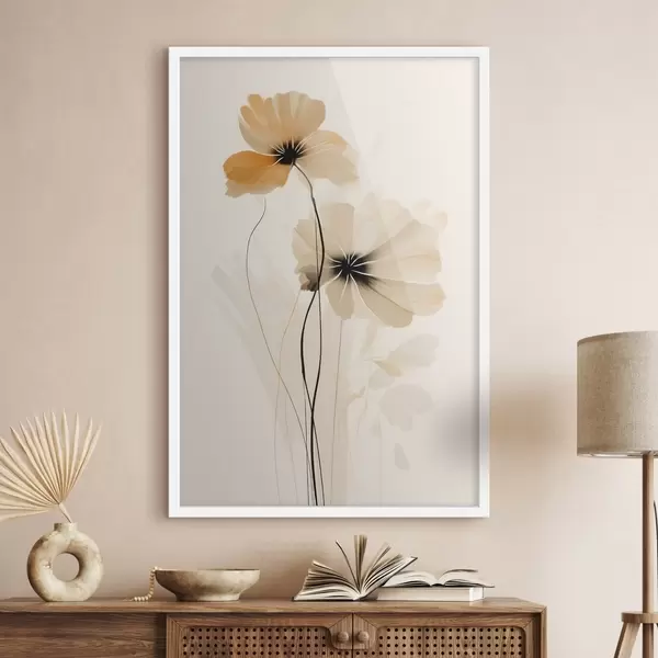 Poster Flori într-o paletă de culori bej-piersică, cu centre întunecate, într-un stil minimalist Nr f46945