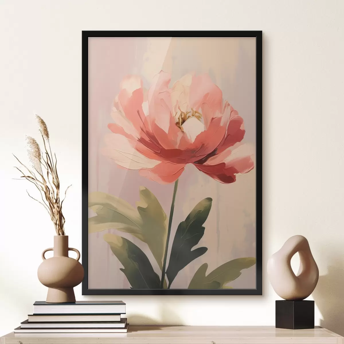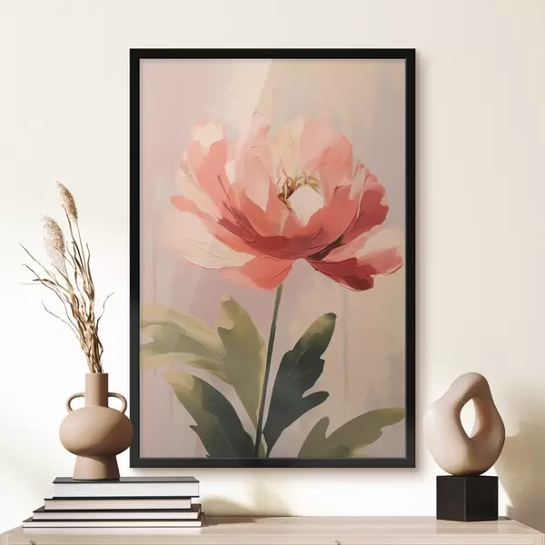 Poster Bujor coral pe fundal pastelat într-un stil ilustrativ de artă modernă f46949