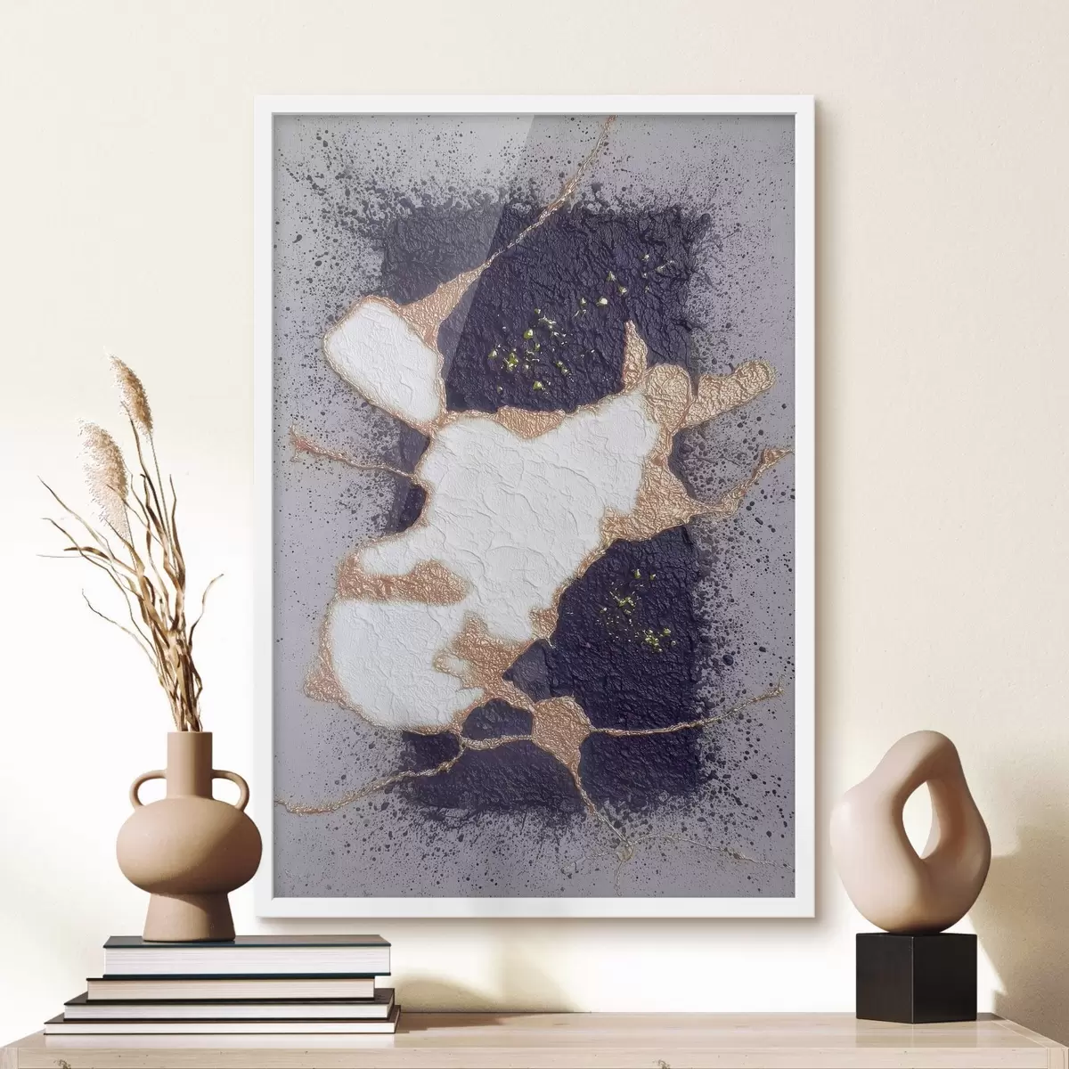 Poster Abstract în tonuri de violet și bej, cu efect de textură volumetrică f46952