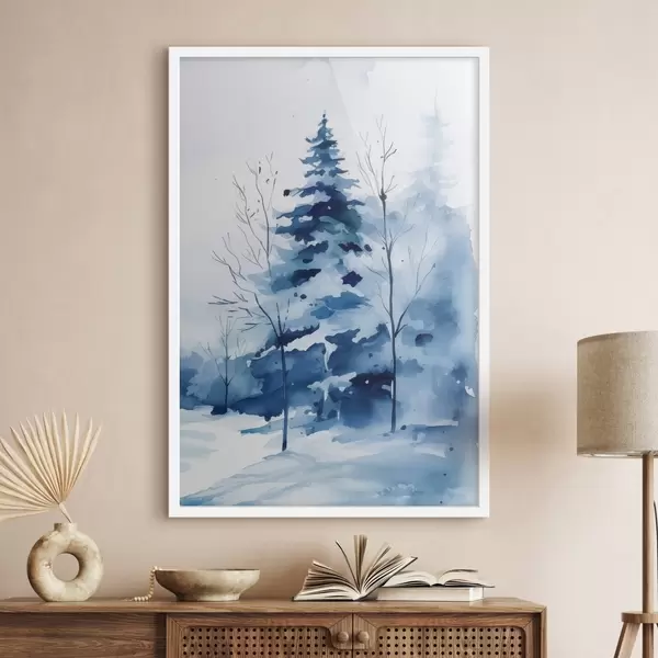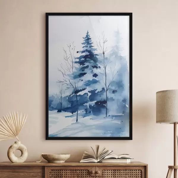 Poster Brad într-o pădure iarna, imitație de acuarelă Nr f46964
