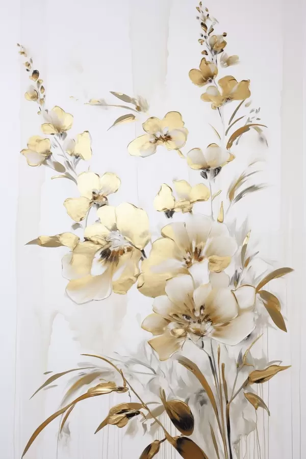 Poster Flori și frunze galbene texturate pe fond alb, cu tușe delicate Nr f47016