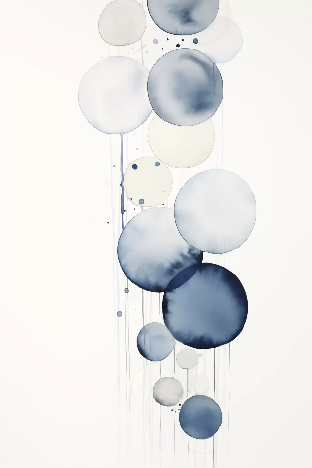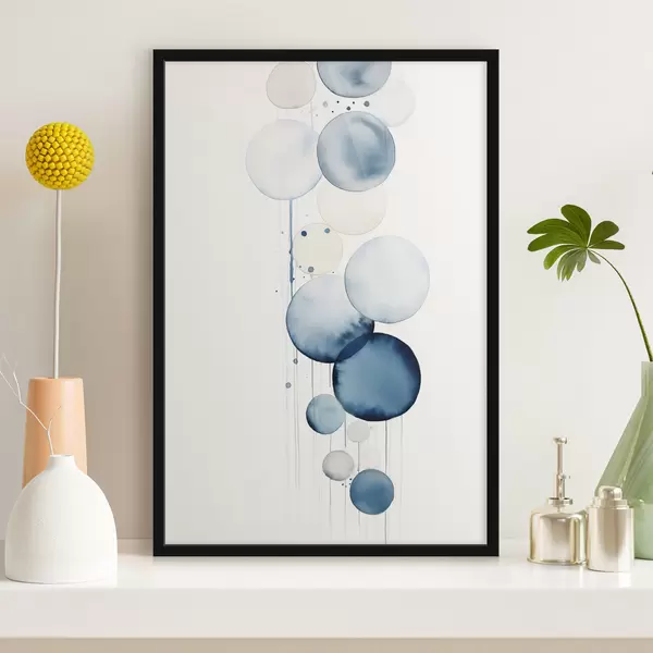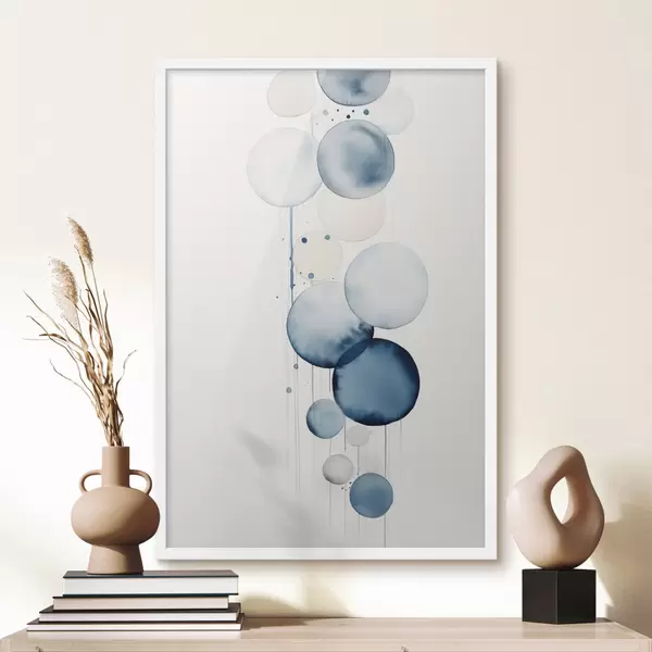Poster Cercuri abstracte texturate albastre și albe, de diferite dimensiuni, pe fond alb Nr f47020