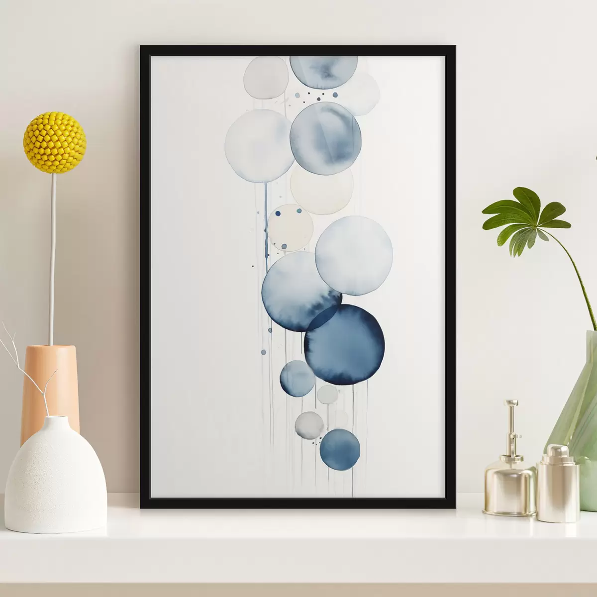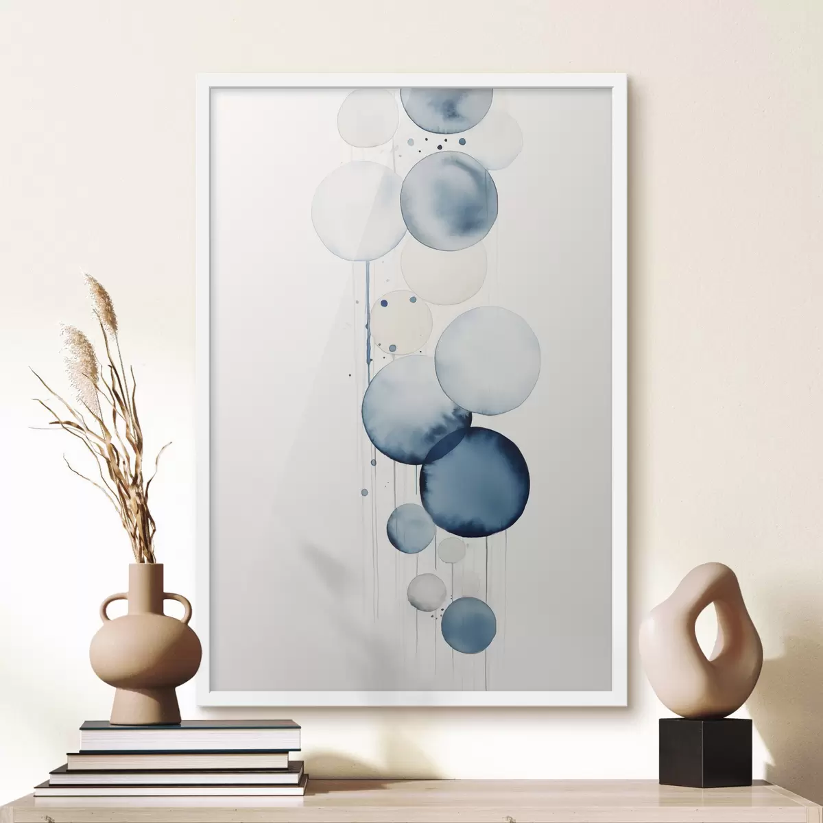 Poster Cercuri abstracte texturate albastre și albe, de diferite dimensiuni, pe fond alb f47020