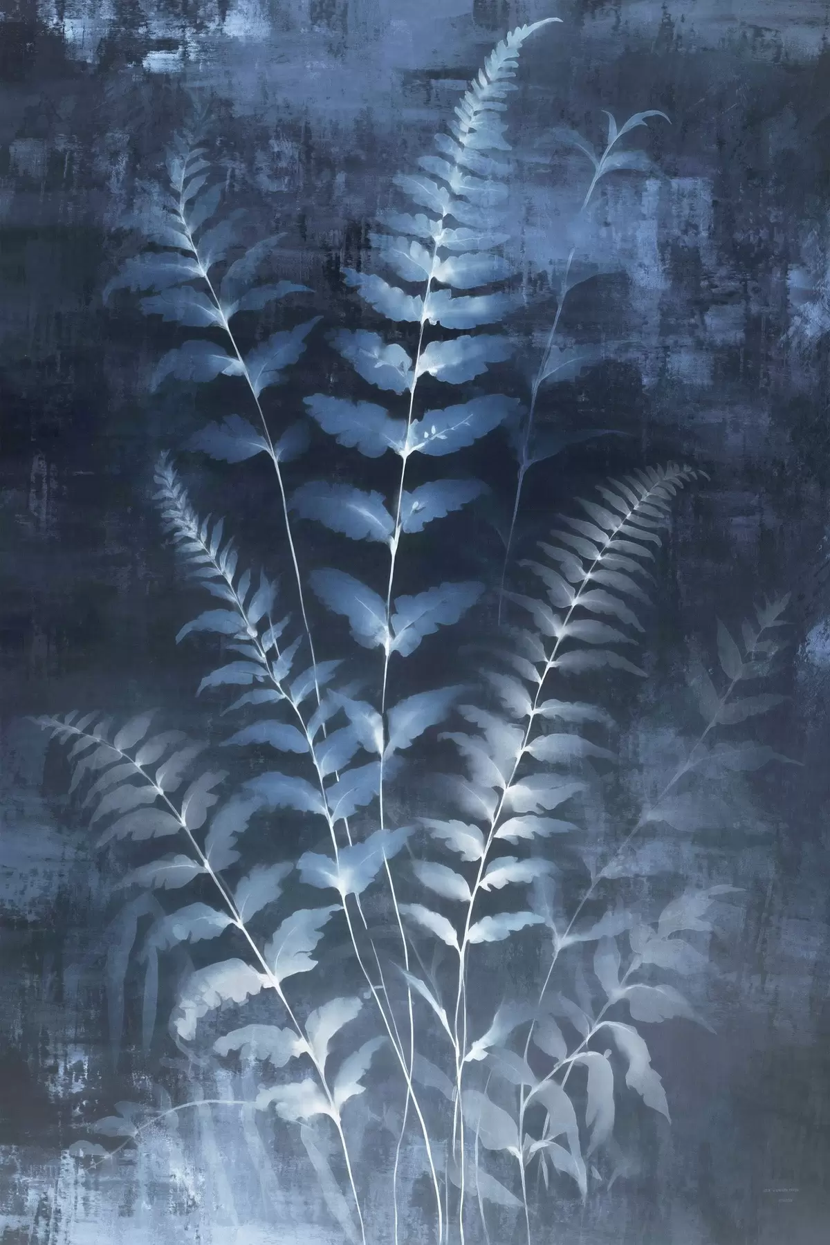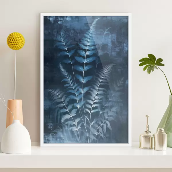Poster Ferigi și plante albastre pe un fundal întunecat, texturat, cu accent pe detaliile complexe, efect de raze X f47027