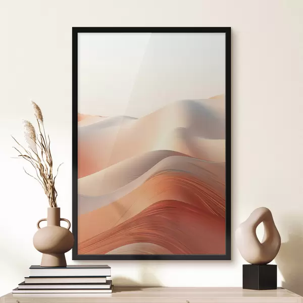 Poster Peisaj abstract de deșert cu dune de nisip în mișcare, în tonuri calde de portocaliu și alb f47031