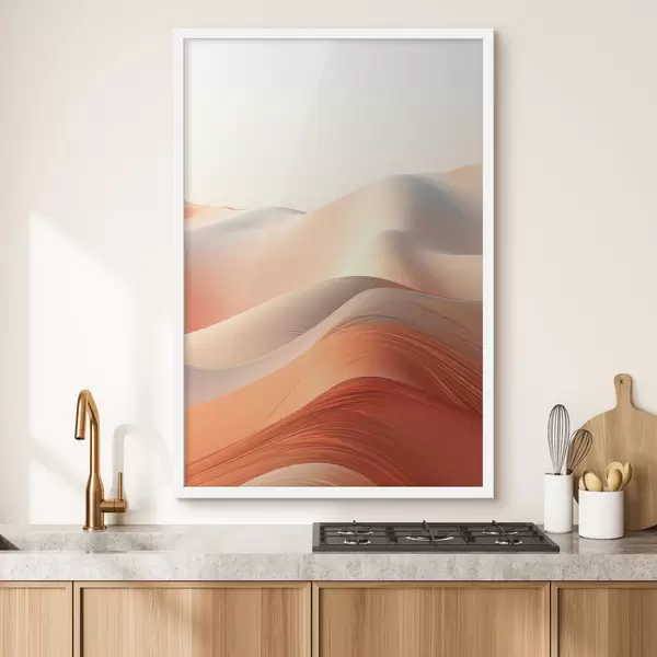 Poster Peisaj abstract de deșert cu dune de nisip în mișcare, în tonuri calde de portocaliu și alb Nr f47031