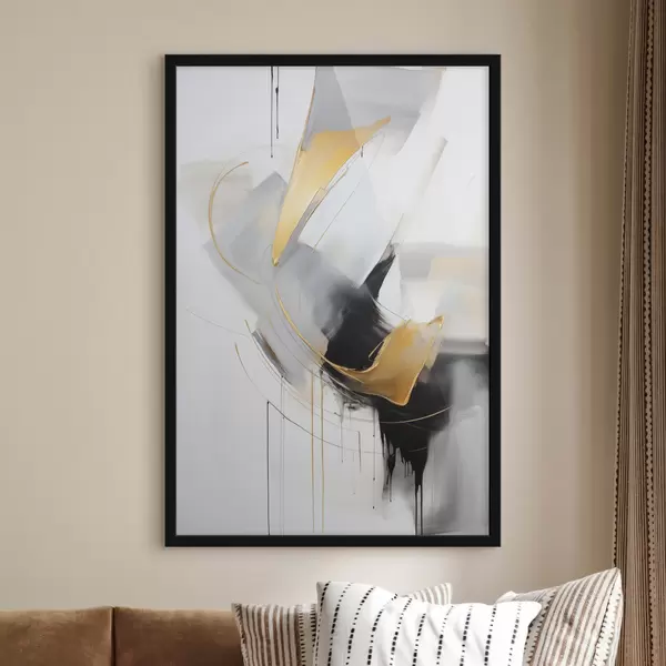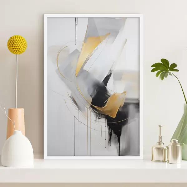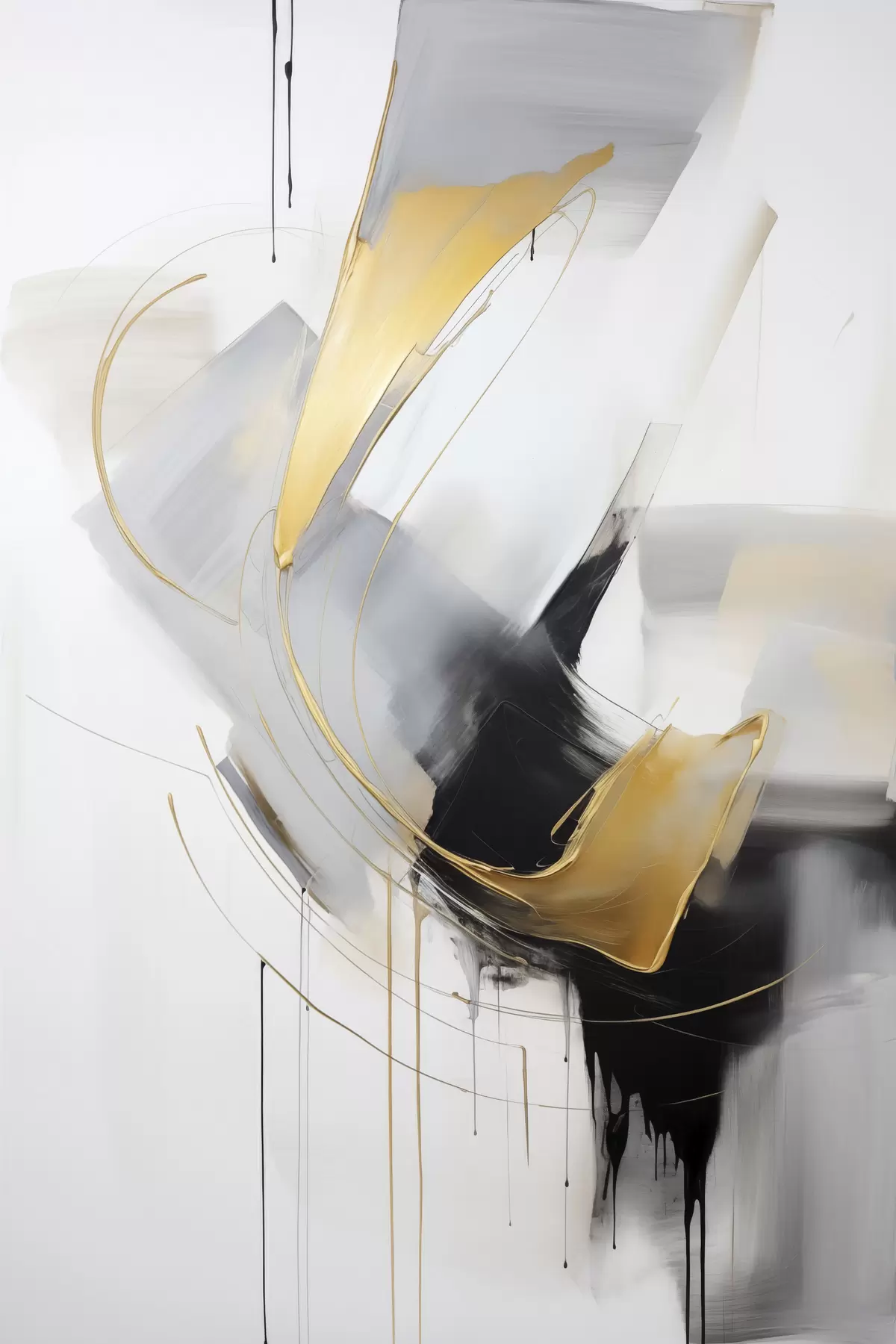 Poster Pictură abstractă cu imitații de pensule galbene, negre și albe, linii dinamice Nr f47034